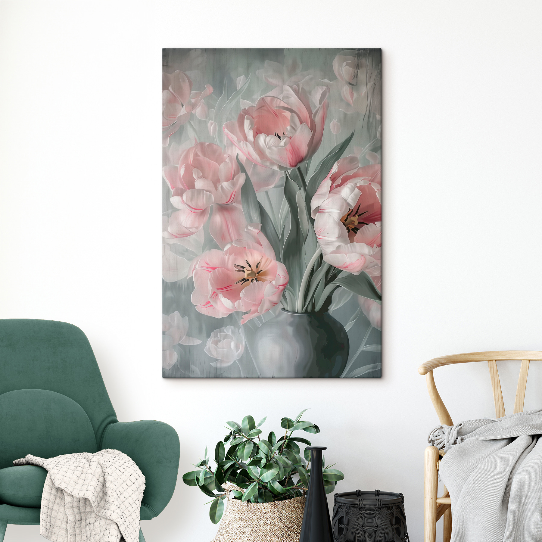 Stellen Sie sich vor, Sie wachen auf und werden jeden Tag von diesen unglaublich zarten Tulpen begrüßt! Dieses “Leinwandbild s40193” aus den Kategorien Fine Art, Blumen und Populäre Leinwandbilder ist ein visueller Genuss. Das sanfte Erröten der Blütenblätter, das zarte Grün der Blätter… das ist doch beruhigend, oder? Und es ist groß genug, um ein Statement zu setzen, aber nicht so groß, dass es Ihre ganze Wand einnimmt.
