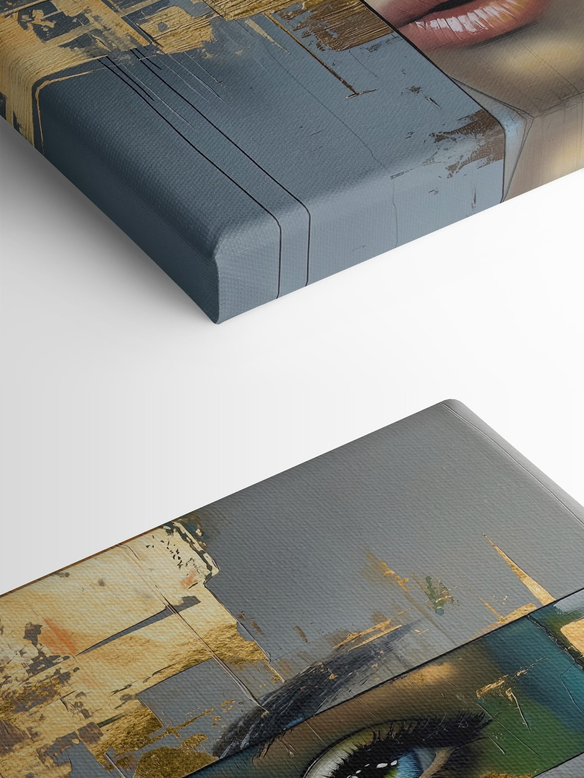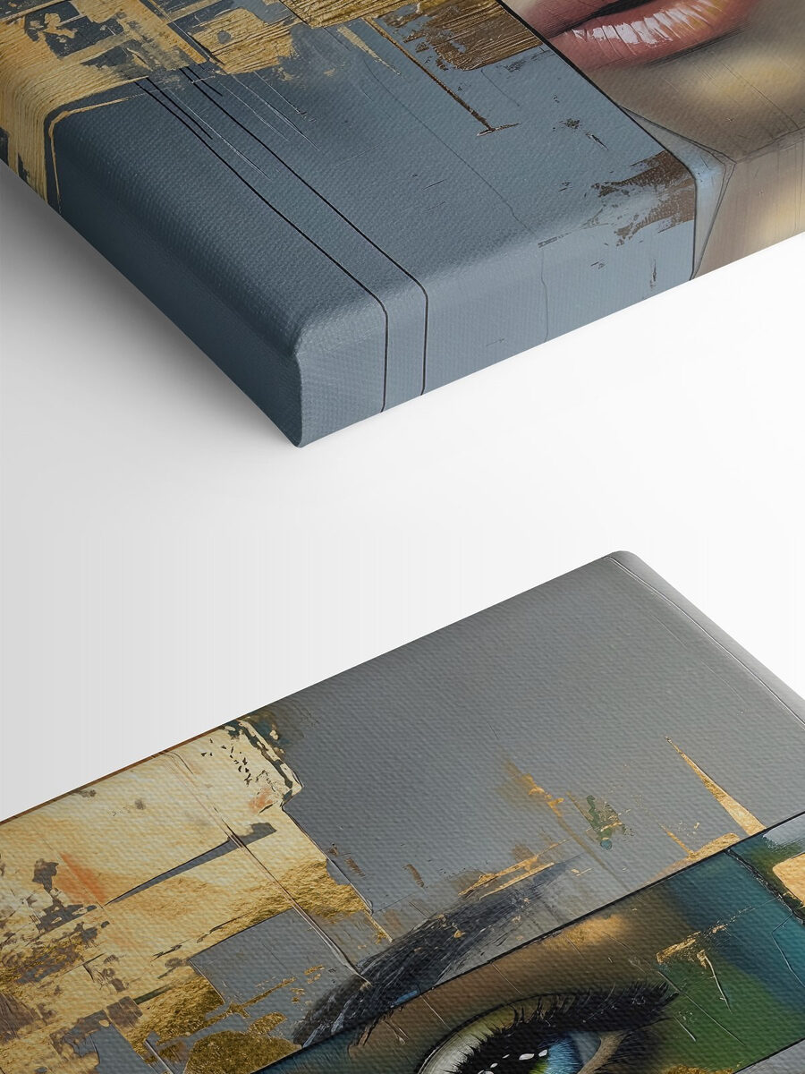 Tauchen Sie mit diesem atemberaubenden Leinwanddruck eines Frauengesichts in eine Welt voller Faszination ein. Die Art und Weise, wie ihre Augen Sie anziehen – fast so, als würden sie ein Geheimnis teilen – schafft eine sofortige Verbindung. Vor einem abstrakten Hintergrund ist es eine auffällige Farbmischung, die jeden Raum erhellt. Stellen Sie sich vor, es in Ihrem Wohnzimmer oder über einer gemütlichen Leseecke aufzuhängen. Ihre Freunde werden bestimmt innehalten, um es zu bewundern. Es ist nicht nur Kunst, sondern auch ein Gesprächsanlass. Bringen Sie Leben an Ihre Wände und lassen Sie sich von diesem fesselnden Werk zu Kreativität und Inspiration anregen!