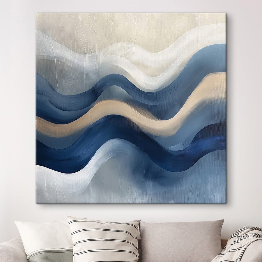 Dieser Leinwanddruck mit blauen und weißen Wellenlinien bringt einen Hauch von Meeresstimmung in jeden Raum. Es fühlt sich an wie eine sanfte Welle, die ans Ufer schlägt, und schafft eine entspannende Atmosphäre, die geradezu nach faulen Nachmittagen und warmen Brisen schreit. Hängen Sie es in einer gemütlichen Ecke oder über einem Sofa auf, und beobachten Sie, wie es den Raum verwandelt und ihm ein bisschen mehr Gelassenheit verleiht. Stellen Sie sich vor, Sie machen es sich mit einem Buch gemütlich, das Sonnenlicht dringt ein und diese Schönheit hängt an der Wand – was für eine Stimmung! Perfekt für Naturliebhaber oder alle, die nicht genug von diesem Strandgefühl bekommen können. Es ist ein einfaches Stück, aber es erzählt eine Geschichte der Ruhe, so dass sich jeder Tag wie ein Mini-Urlaub anfühlt.