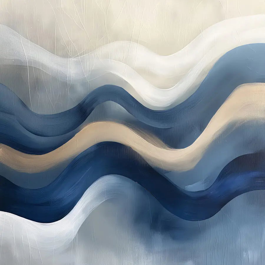 Dieser Leinwanddruck mit blauen und weißen Wellenlinien bringt einen Hauch von Meeresstimmung in jeden Raum. Es fühlt sich an wie eine sanfte Welle, die ans Ufer schlägt, und schafft eine entspannende Atmosphäre, die geradezu nach faulen Nachmittagen und warmen Brisen schreit. Hängen Sie es in einer gemütlichen Ecke oder über einem Sofa auf, und beobachten Sie, wie es den Raum verwandelt und ihm ein bisschen mehr Gelassenheit verleiht. Stellen Sie sich vor, Sie machen es sich mit einem Buch gemütlich, das Sonnenlicht dringt ein und diese Schönheit hängt an der Wand – was für eine Stimmung! Perfekt für Naturliebhaber oder alle, die nicht genug von diesem Strandgefühl bekommen können. Es ist ein einfaches Stück, aber es erzählt eine Geschichte der Ruhe, so dass sich jeder Tag wie ein Mini-Urlaub anfühlt.