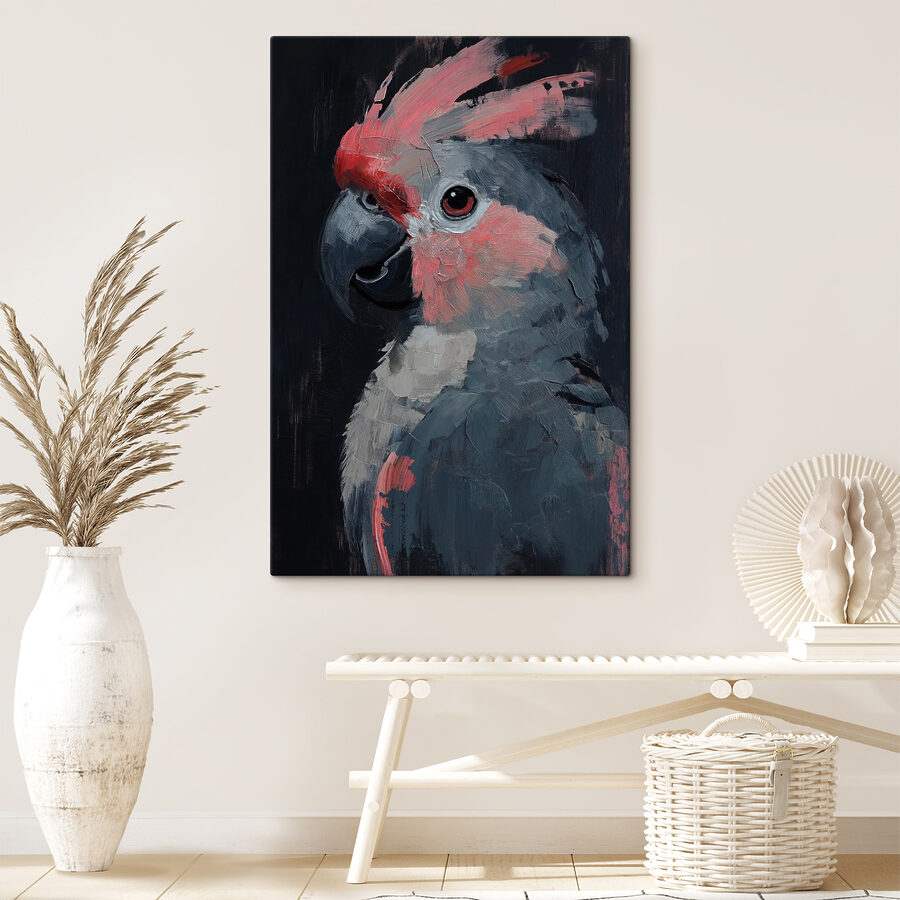 Verwandeln Sie Ihren Raum mit diesem atemberaubenden Leinwanddruck, der ein Papageienporträt voller Persönlichkeit zeigt. Die verspielten Pinselstriche erwecken den gefiederten Freund zum Leben und lassen ihn vor einem tonigen Hintergrund erstrahlen. Stellen Sie sich vor, Sie betreten einen Raum und werden von dieser lebhaften Kreatur begrüßt – es ist wie ein kleiner Ausbruch von Freude, der an Ihrer Wand hängt. Dieses Bild eignet sich perfekt für Tierliebhaber oder für alle, die ein einzigartiges Kunstwerk suchen, denn es sorgt für Freude und Unterhaltung. Vielleicht inspiriert es Sie sogar zu einem Tagtraum vom tropischen Faulenzen! Verleihen Sie Ihrer Einrichtung eine lustige Note und lassen Sie Ihre Wände sprechen.