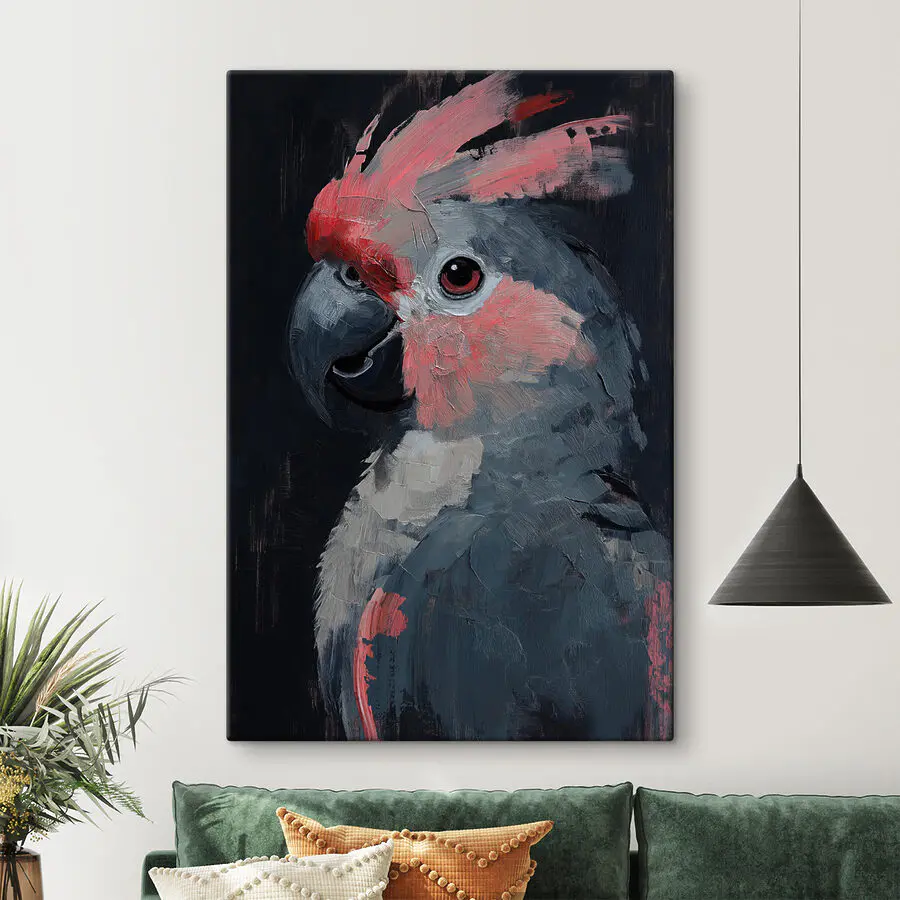 Verwandeln Sie Ihren Raum mit diesem atemberaubenden Leinwanddruck, der ein Papageienporträt voller Persönlichkeit zeigt. Die verspielten Pinselstriche erwecken den gefiederten Freund zum Leben und lassen ihn vor einem tonigen Hintergrund erstrahlen. Stellen Sie sich vor, Sie betreten einen Raum und werden von dieser lebhaften Kreatur begrüßt – es ist wie ein kleiner Ausbruch von Freude, der an Ihrer Wand hängt. Dieses Bild eignet sich perfekt für Tierliebhaber oder für alle, die ein einzigartiges Kunstwerk suchen, denn es sorgt für Freude und Unterhaltung. Vielleicht inspiriert es Sie sogar zu einem Tagtraum vom tropischen Faulenzen! Verleihen Sie Ihrer Einrichtung eine lustige Note und lassen Sie Ihre Wände sprechen.
