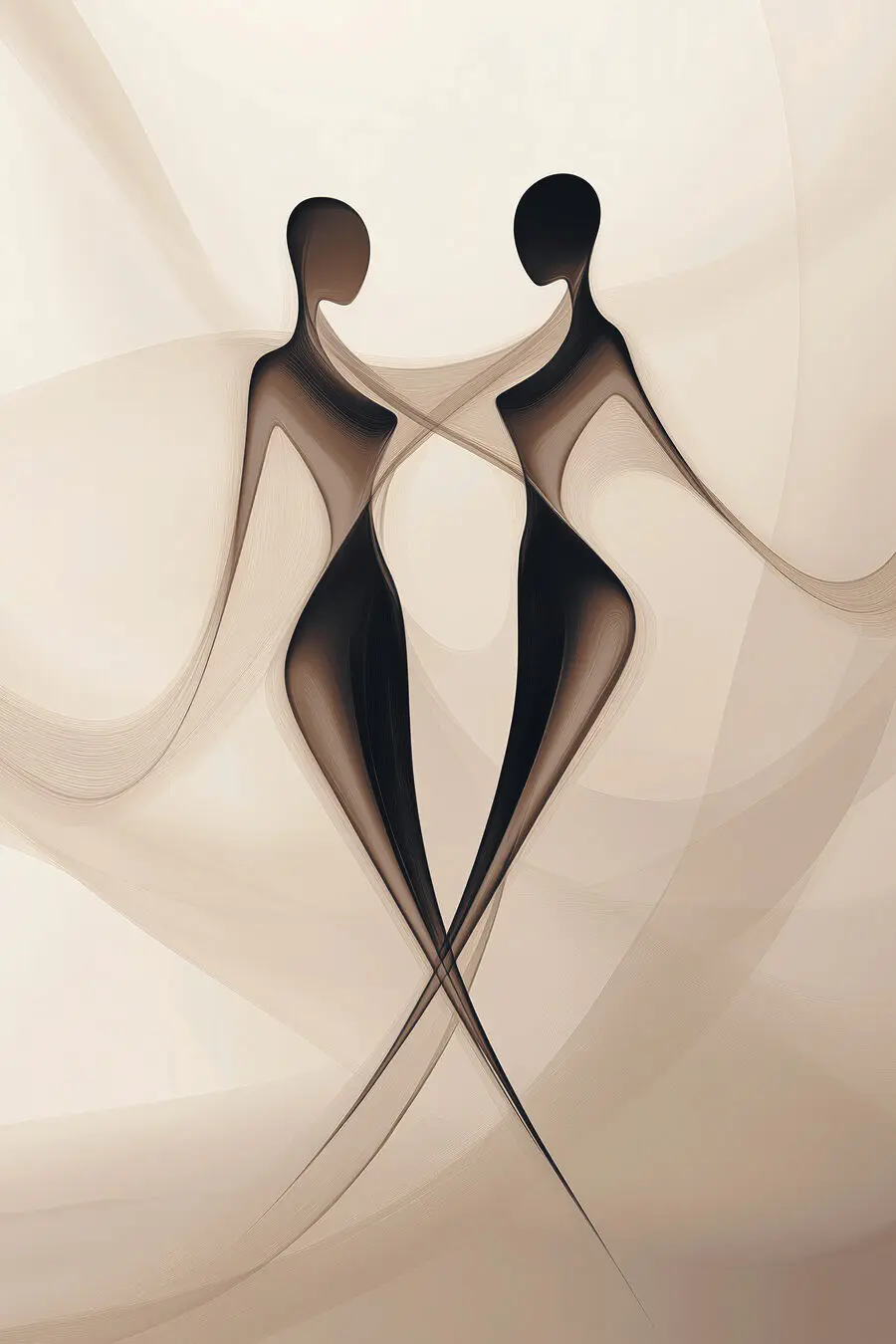 Entdecken Sie ein fesselndes Werk, das jedem Raum Wärme verleiht. Dieser Leinwanddruck, der zwei elegante Silhouetten in einer anmutigen Umarmung zeigt, fühlt sich wie eine sanfte Umarmung für Ihre Wände an. Die weiche Schwarz-Weiß-Farbpalette lädt zu einer gemütlichen Atmosphäre ein und ist gleichzeitig ein mutiges Statement. Stellen Sie sich das Bild in einer gemütlichen Leseecke oder sogar in einem schicken Flur vor, wo es zu Gesprächen anregt und vielleicht sogar ein paar Lacher hervorruft. Perfekt für alle, die einen minimalistischen Touch zu schätzen wissen, lässt es sich mühelos mit verschiedenen Einrichtungsstilen kombinieren. Es ist nicht nur Kunst, sondern eine Erinnerung an Verbindung und Eleganz, die Ihrem Zuhause das gewisse Etwas verleiht.