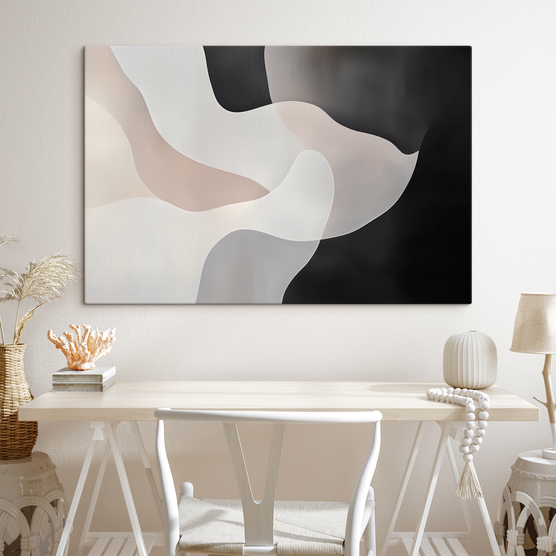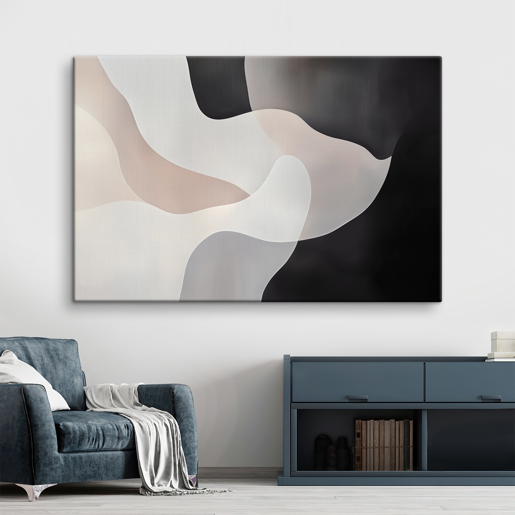 Dieser atemberaubende Leinwanddruck mit einer fesselnden Mischung aus Schwarz, Weiß und Grautönen verwandelt jeden Raum. Die fließenden Formen strahlen eine beruhigende und zugleich raffinierte Atmosphäre aus – perfekt, wenn Sie Gäste beeindrucken oder einfach nur einen Moment der Ruhe inmitten Ihres geschäftigen Tages genießen möchten. Stellen Sie ihn sich über einer gemütlichen Couch vor, wo er Gespräche anregt, oder in einer ruhigen Ecke, wo Sie Ihren Kaffee schlürfen und träumen. Es ist wie visuelle Poesie, die Gedanken und Gefühle anregt, ohne ein Wort zu sagen. Eine einzigartige Ergänzung, die Wände zum Leben erweckt und genau den richtigen Hauch von modernem Flair bietet.
