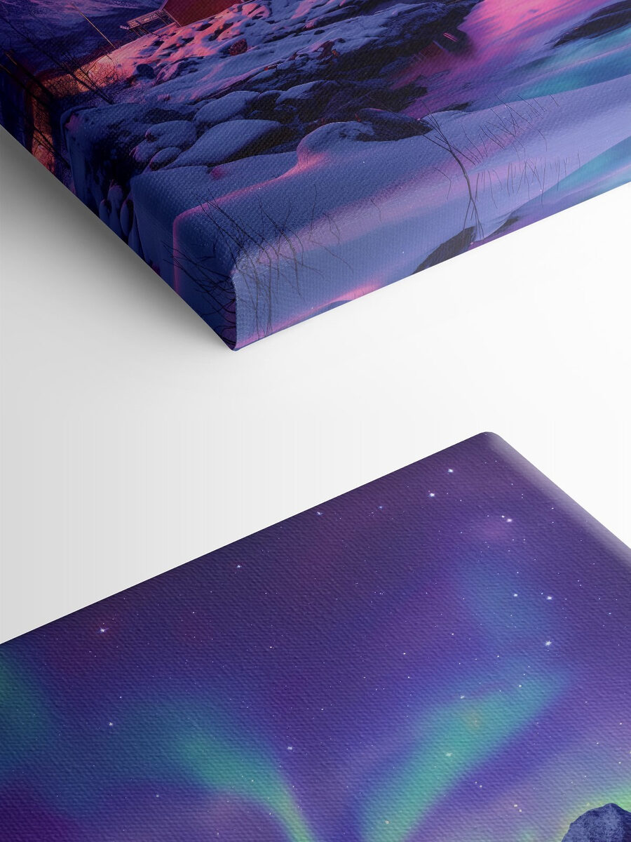 Dieser faszinierende Leinwanddruck mit einer verschneiten Landschaft, majestätischen Bergen und einem ruhigen See verwandelt jeden Raum. Es ist, als würde man sich ein Stück Natur direkt nach Hause holen. Stellen Sie sich vor, wie Sie es sich mit einem warmen Getränk gemütlich machen, die atemberaubenden Farben des Himmels bewundern und sich von der imaginären Winterbrise ein wenig abkühlen lassen. Die verträumte Szene weckt Tagträume von Abenteuern und eignet sich daher perfekt für ein Wohnzimmer oder eine ruhige Leseecke. Ihre Freunde werden die Atmosphäre bewundern, und Sie werden vielleicht Lust auf einen heißen Kakao bekommen, da es eine friedliche, bezaubernde Atmosphäre schafft. Erhöhen Sie Ihr Dekorationsspiel – es ist ein perfekter Fluchtort!