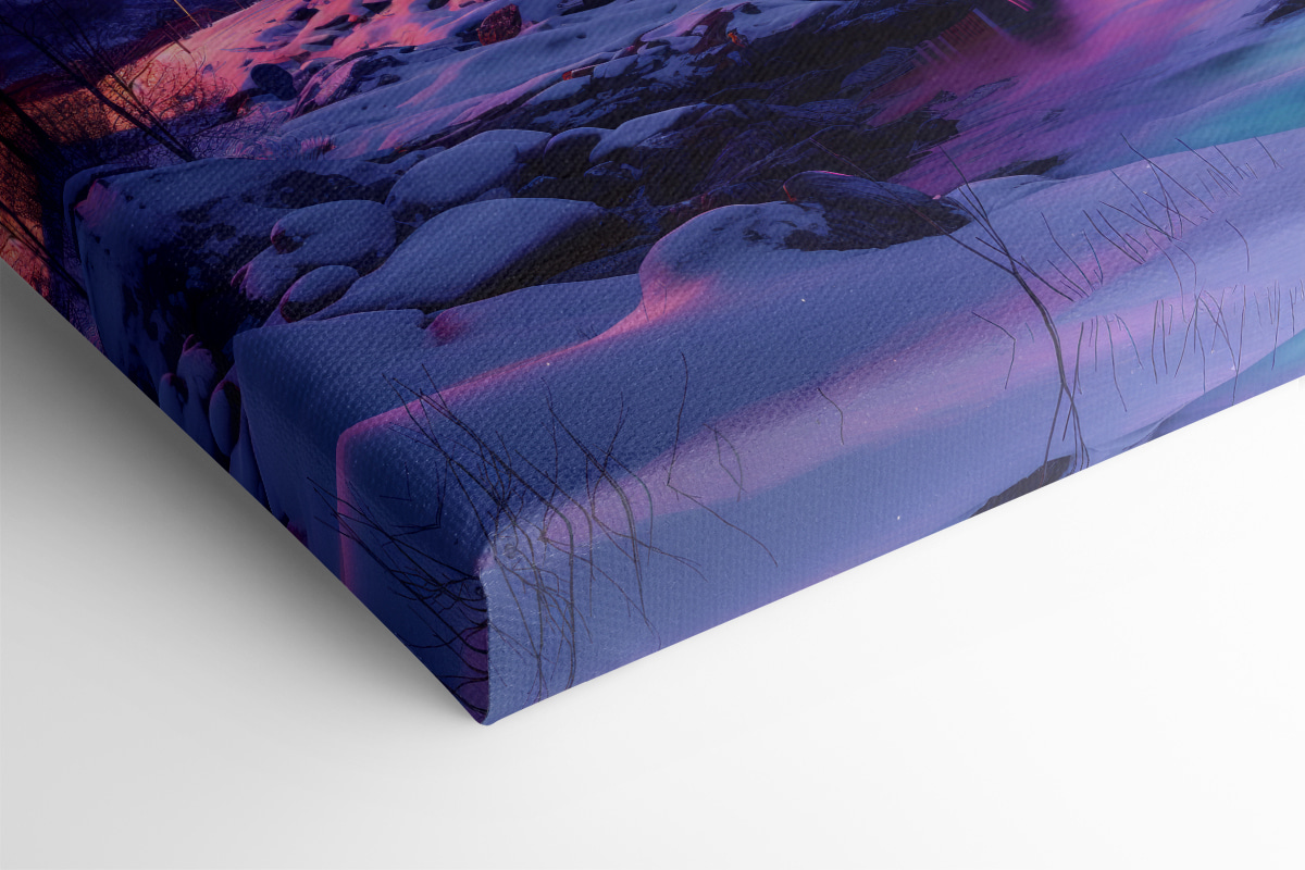 Dieser faszinierende Leinwanddruck mit einer verschneiten Landschaft, majestätischen Bergen und einem ruhigen See verwandelt jeden Raum. Es ist, als würde man sich ein Stück Natur direkt nach Hause holen. Stellen Sie sich vor, wie Sie es sich mit einem warmen Getränk gemütlich machen, die atemberaubenden Farben des Himmels bewundern und sich von der imaginären Winterbrise ein wenig abkühlen lassen. Die verträumte Szene weckt Tagträume von Abenteuern und eignet sich daher perfekt für ein Wohnzimmer oder eine ruhige Leseecke. Ihre Freunde werden die Atmosphäre bewundern, und Sie werden vielleicht Lust auf einen heißen Kakao bekommen, da es eine friedliche, bezaubernde Atmosphäre schafft. Erhöhen Sie Ihr Dekorationsspiel – es ist ein perfekter Fluchtort!