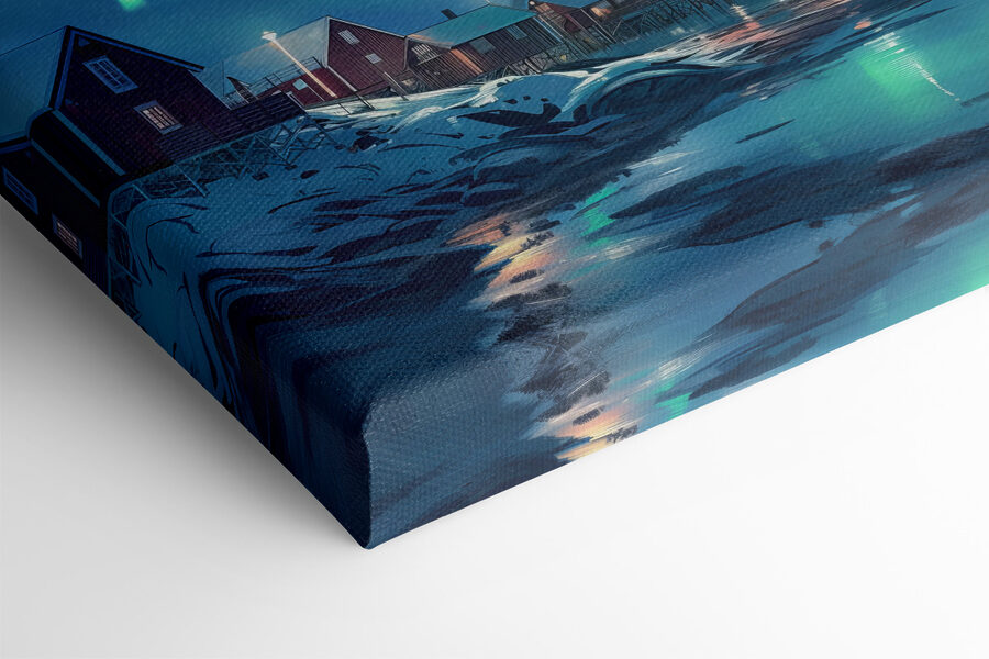 Verwandeln Sie Ihren Raum mit diesem atemberaubenden Leinwanddruck der Aurora Borealis, die ihr Leuchten über eine verschneite Berglandschaft wirft. Stellen Sie sich vor, Sie machen es sich mit einem warmen Getränk gemütlich und betrachten dieses farbenfrohe Lichtspiel direkt von Ihrem Wohnzimmer aus. Die leuchtenden Schatten tanzen über einem friedlichen Dorf und lassen jede Wand wie ein Fenster zu einer anderen Welt erscheinen. Es ist, als hätte die Natur eine Party geschmissen, und jeder ist eingeladen! Perfekt für Naturliebhaber oder alle, die ein wenig Magie in ihrem Leben brauchen. Jeder Blick inspiriert zu Abenteuern und Tagträumen von fernen Orten und macht dieses Stück zu mehr als nur Dekoration – es ist eine Einladung zum Wandern.