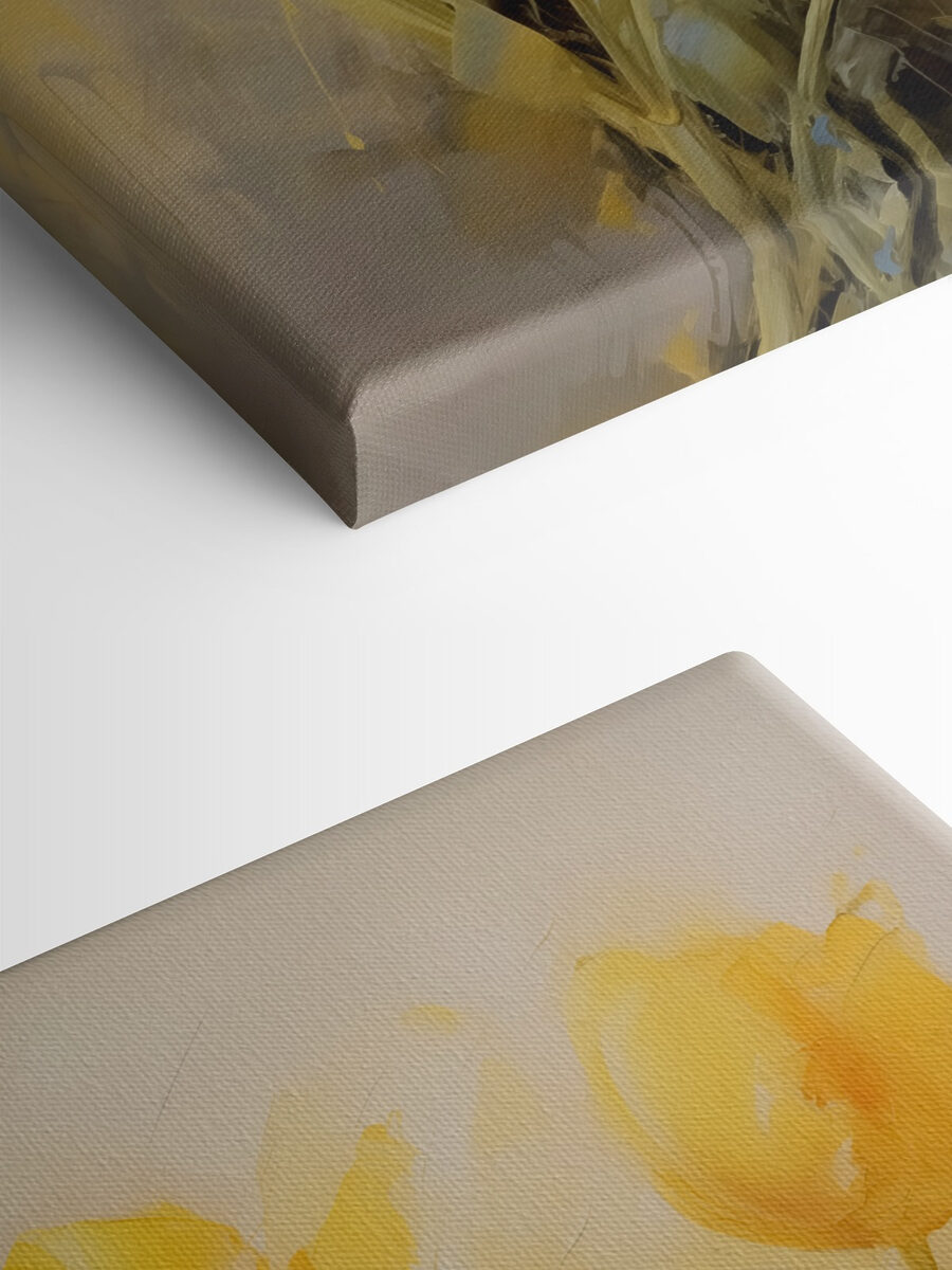 Erhellen Sie jeden Raum mit diesem atemberaubenden Leinwanddruck gelber Blumen. Es ist wie ein kleiner Ausbruch von Sonnenschein, der nie verwelkt. Stellen Sie sich vor, Sie betreten Ihren Raum und werden von fröhlichen Blüten begrüßt, die Ihnen zuwinken. Perfekt für alle, die die Natur lieben und einen Farbtupfer setzen wollen, ohne sich um einen richtigen Garten kümmern zu müssen.