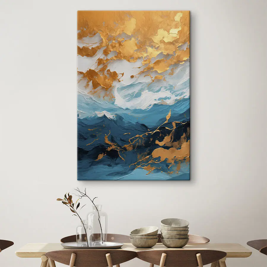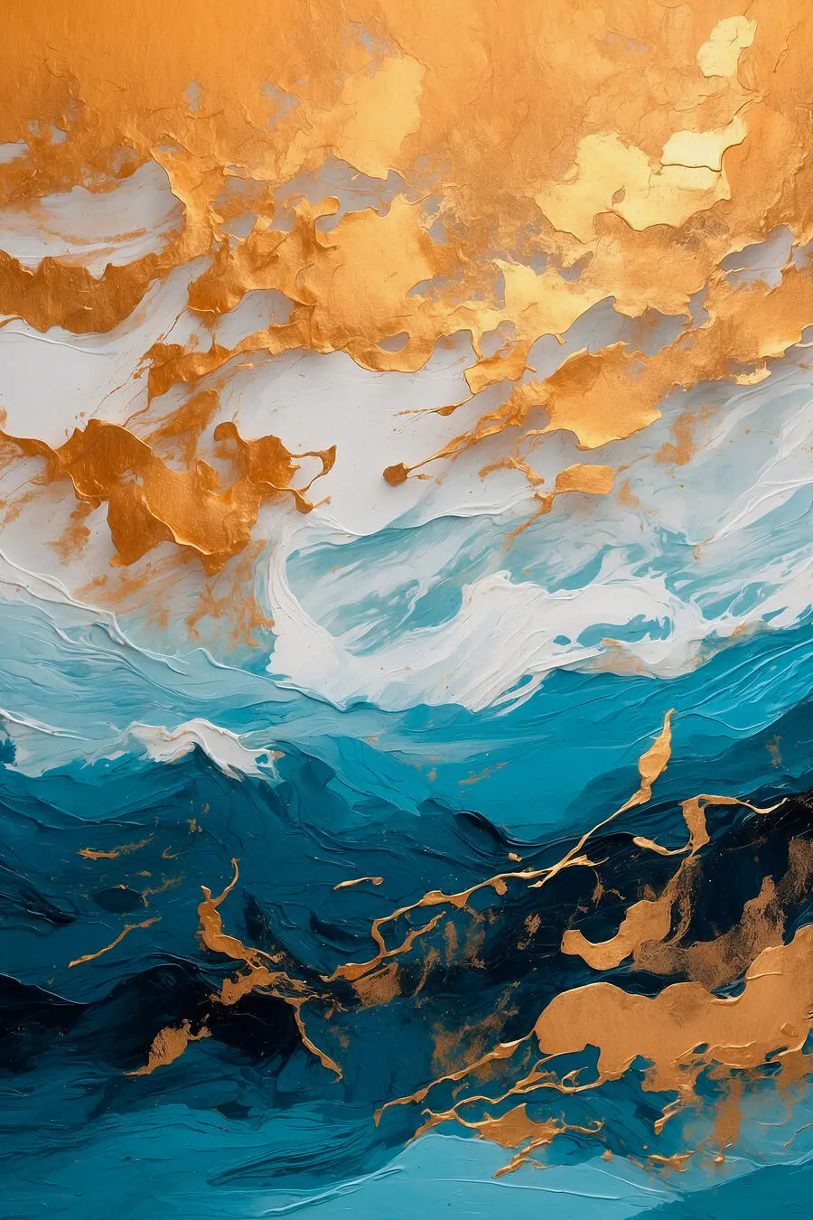 Tauchen Sie ein in eine Welt, in der azurblaue Wellen mit bernsteinfarbenen Ufern tanzen und jeden Raum in eine heitere Stimmung versetzen. Dieses Stück fängt das friedliche Chaos des Meeres perfekt ein und erinnert Sie an sonnenverwöhnte Strände und sanfte Meeresbrisen. Stellen Sie sich vor, es würde in Ihrem Wohnzimmer hängen und jedes Mal, wenn Gäste kommen, Freude und Gespräche auslösen. Es ist, als hätten Sie einen kleinen Urlaub direkt an Ihrer Wand. Die Farben wirbeln und erzeugen eine ruhige Energie, die zu Tagträumen und faulen Nachmittagen einlädt. Jeder Blick ist eine kleine Flucht und lässt das Zuhause ein bisschen wie das Paradies erscheinen. Wer würde sich das nicht wünschen?