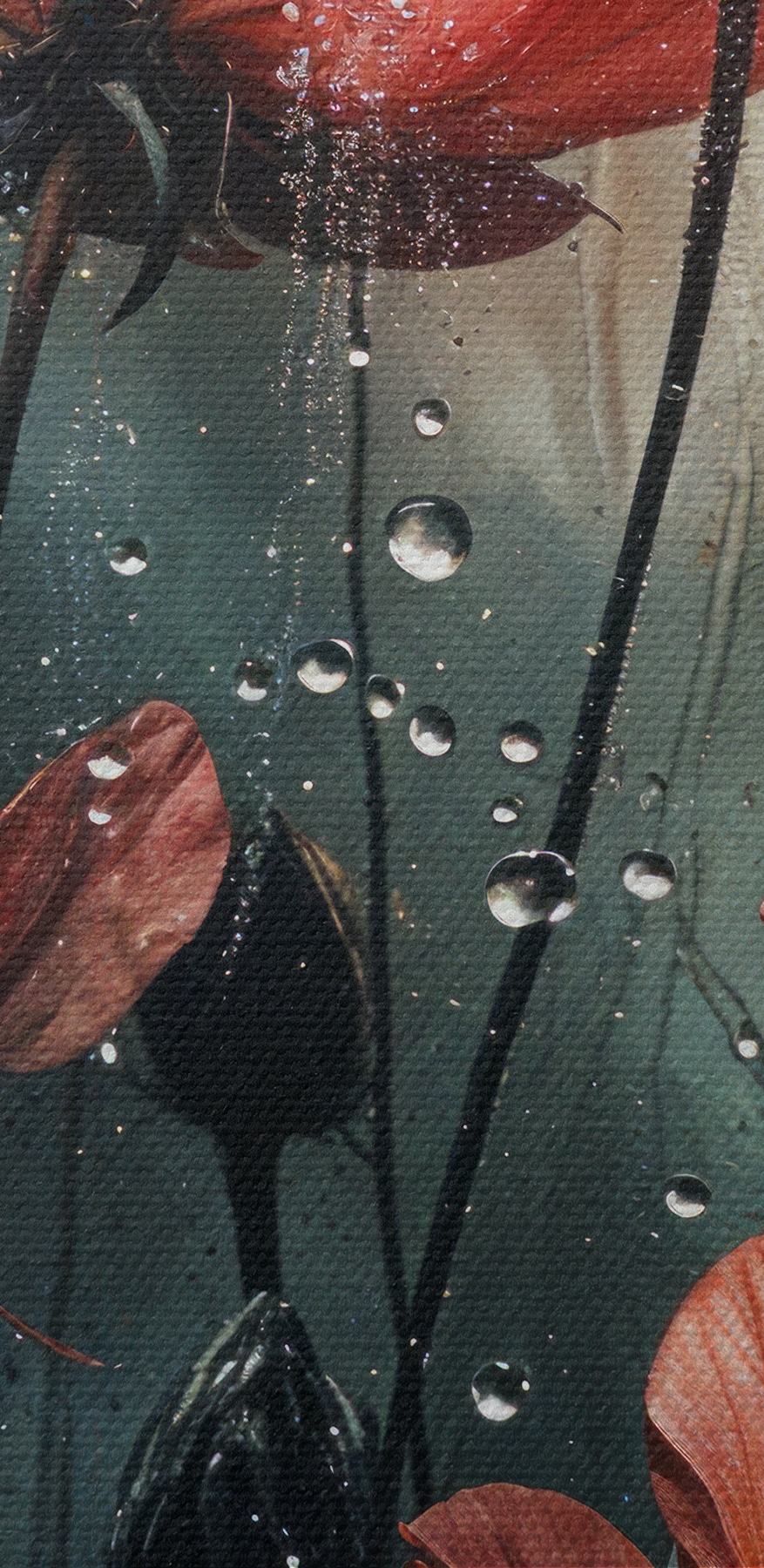 Bringen Sie mit “Rain-kissed blossoms embrace the storm” einen Hauch von Naturschauspiel in Ihren Raum. Stellen Sie sich diese zarten Blumen vor, die unter einem sanften Regenschauer tanzen, wobei die Tropfen wie kleine Juwelen glitzern. Vor einem weichen, stimmungsvollen Hintergrund fängt dieser Leinwanddruck sowohl die Zerbrechlichkeit als auch die Widerstandsfähigkeit des Lebens ein. Es ist wie eine sanfte Erinnerung daran, dass Stürme der Schönheit Platz machen können. Perfekt für eine leere Wand, die um Aufmerksamkeit bettelt, oder um ein Gespräch bei einer gemütlichen Tasse Tee anzuregen. Lassen Sie diese Blüten Leben, Farbe und einen Hauch von Faszination in jeden Raum bringen. Wer würde es sich nicht gerne mit dieser Art von Atmosphäre gemütlich machen?