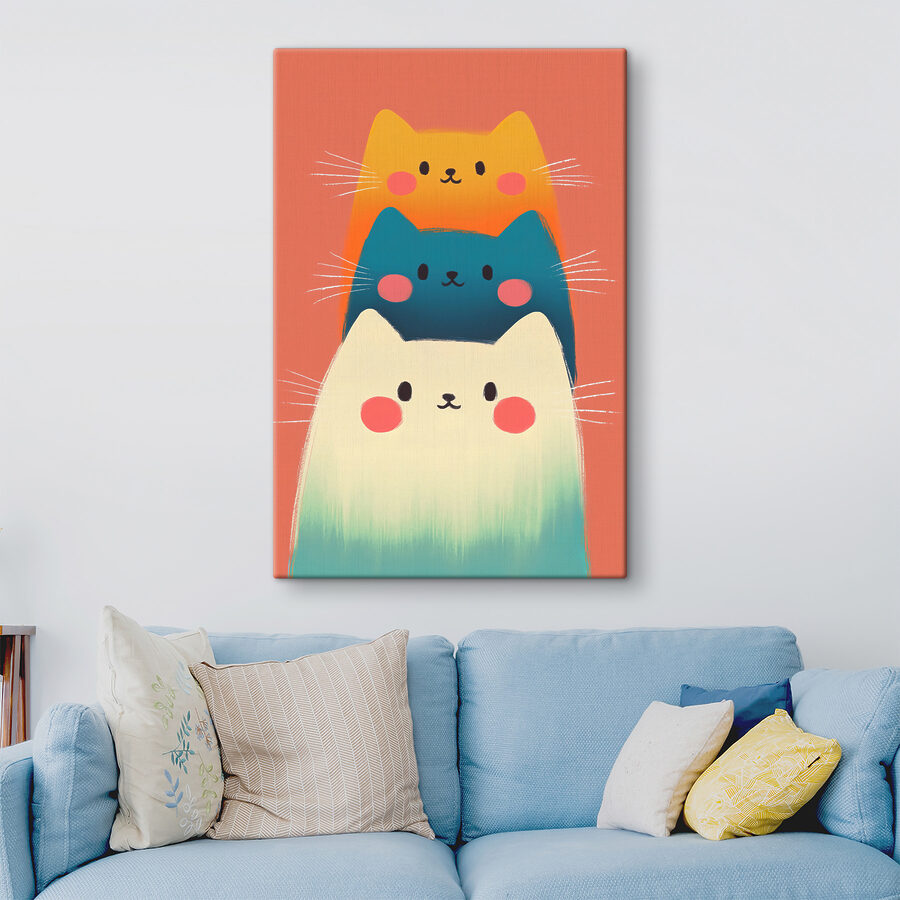 Haben Sie eine Vorliebe für schrullige und liebenswerte Dekorationen? Das ist “Wandbilder s40431”! Dieses farbenfrohe Bild ist perfekt für alle, die einer Prise Skurrilität nicht widerstehen können – sehen Sie sich nur diese bunten Katzen an, die wie ein gemütlicher Katzenturm gestapelt sind! Es zaubert sicher ein Lächeln auf Ihr Gesicht und einen Hauch von Freude an Ihre Wände. Es eignet sich für jede Ecke des Hauses, die eine kleine Aufmunterung braucht – vielleicht für die Küche, das Kinderzimmer oder den Flur.