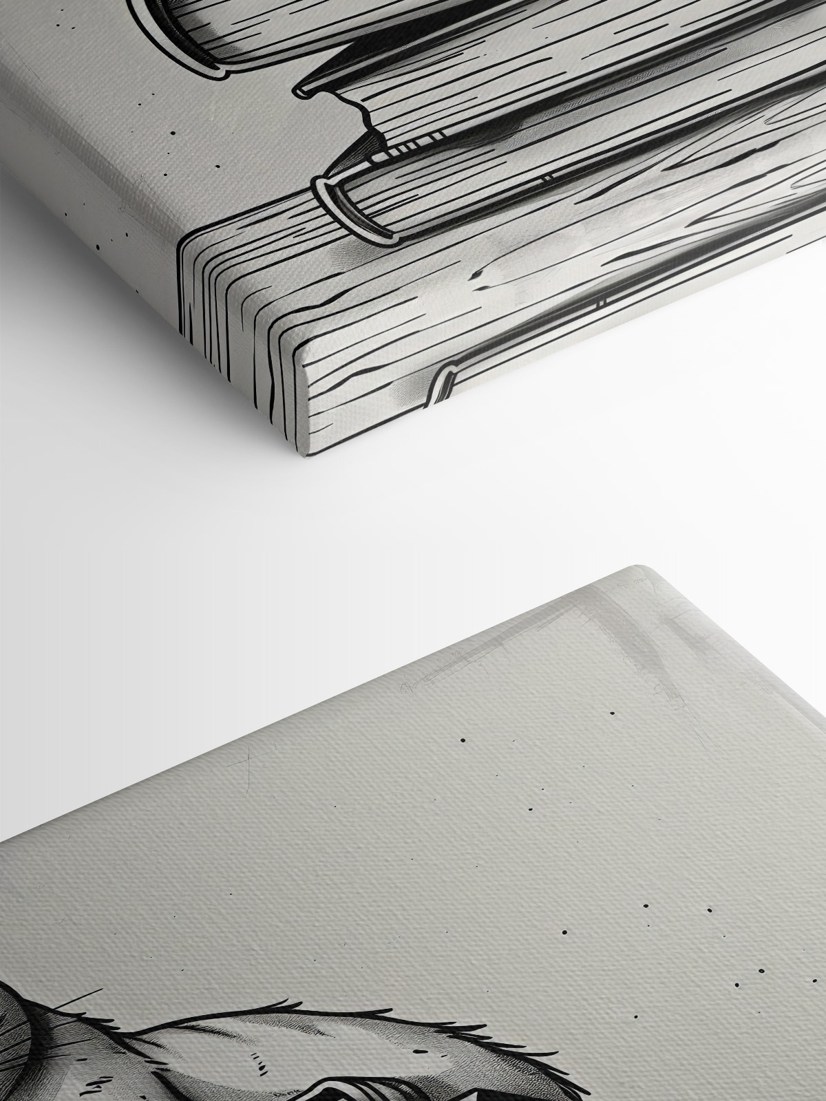 Und hey, es geht nicht nur um das Aussehen! Die friedliche Ausstrahlung des Buches gibt Ihnen ein Gefühl der Ruhe. Dieser Druck ist ein sofortiger Gesprächsanlass und ein täglicher Stimmungsaufheller. Jeder braucht ein bisschen Buchcharme mit einem Hauch von fauler Katze, damit sich ein Raum wie ein Zuhause anfühlt. Warum also nicht mit diesem verspielten, unaufdringlichen Motiv ein Stück heiteren, klassischen Charme in Ihre Einrichtung bringen?