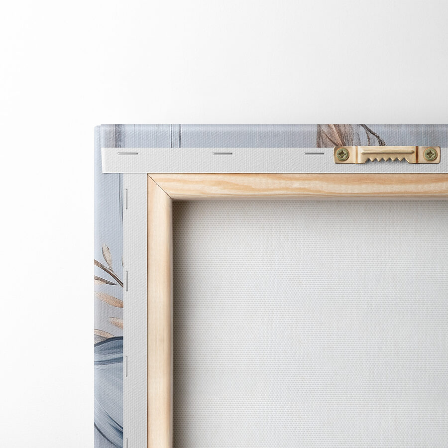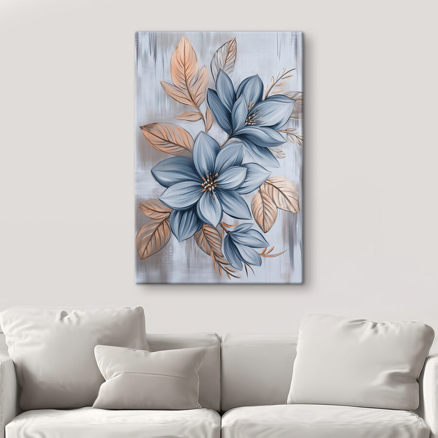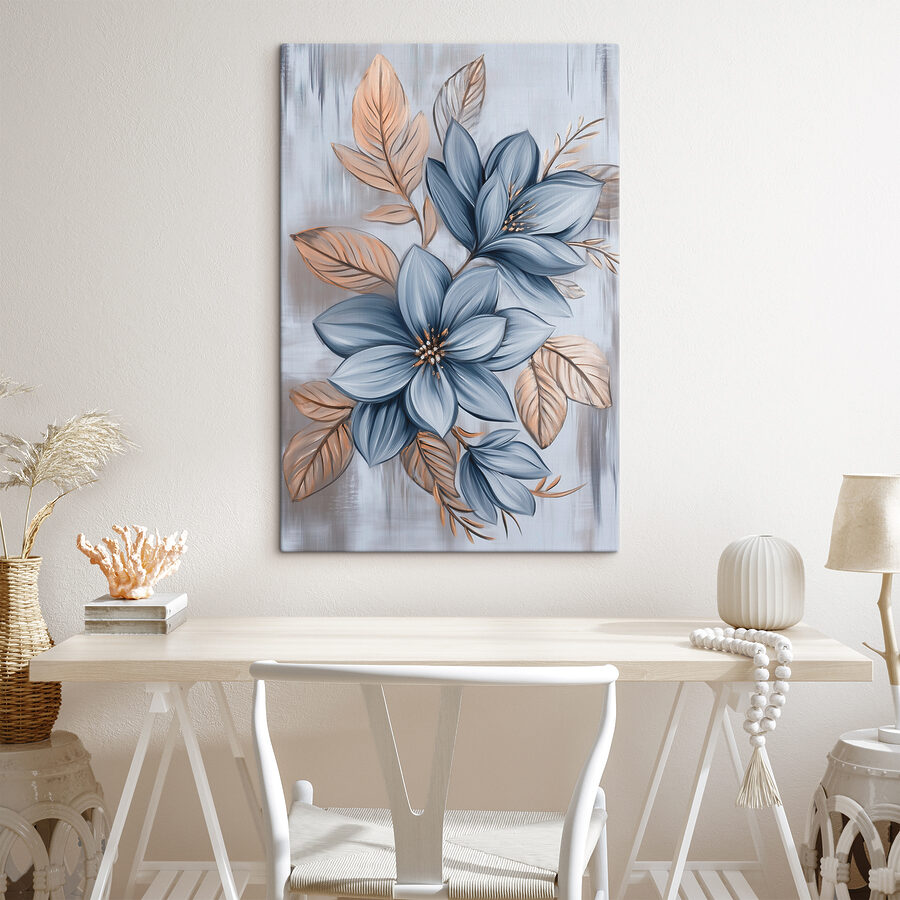 Verschönern Sie Ihren Raum mit diesem Leinwanddruck, der Blumen und Blätter zum Leben erweckt. Stellen Sie sich vor, Sie betreten einen gemütlichen Raum voller Wärme und Frühlingsduft, auch wenn es draußen schneit. Die sanften Blau- und Erdtöne schaffen eine beruhigende Atmosphäre, die sich perfekt für ein Schlafzimmer oder einen Wohnbereich eignet. Es ist ein schöner Kompromiss zwischen kühn und subtil, der für Gesprächsstoff sorgt, ohne sich zu sehr aufzudrängen. Hängen Sie es über eine Couch oder am Fenster auf und lassen Sie die Schönheit der Natur, die auf Leinwand festgehalten wurde, Ihr Zuhause in eine kleine Oase verwandeln. Wer hätte gedacht, dass ein einfaches Kunstwerk solche Freude auslösen kann?