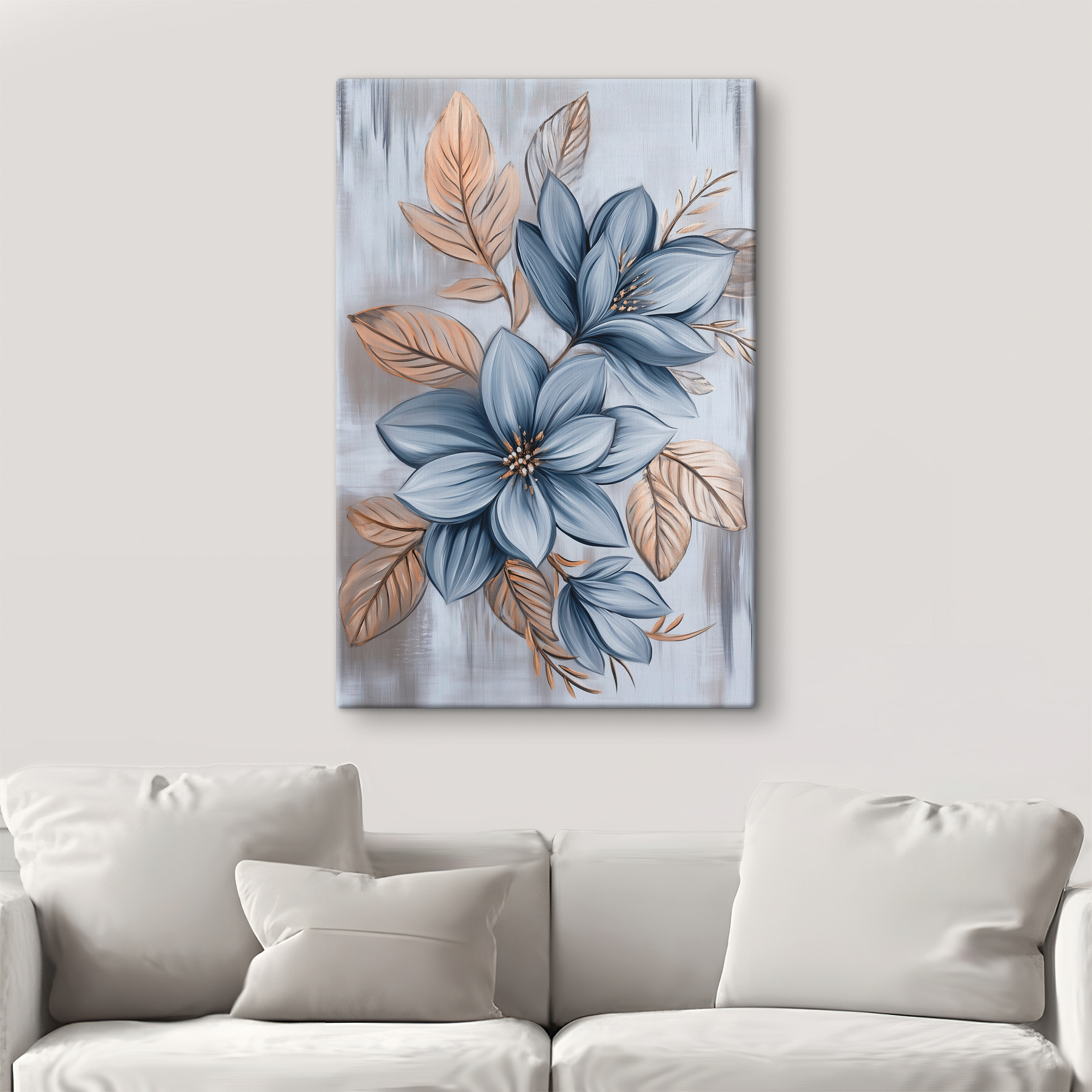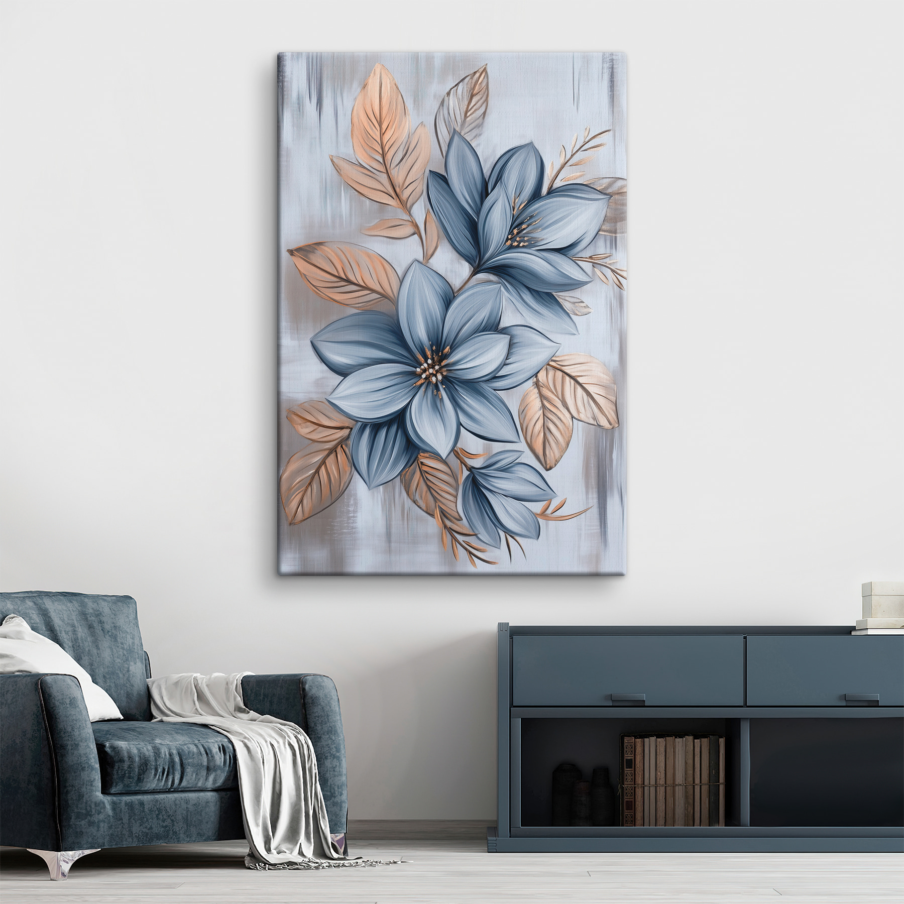 Verschönern Sie Ihren Raum mit diesem Leinwanddruck, der Blumen und Blätter zum Leben erweckt. Stellen Sie sich vor, Sie betreten einen gemütlichen Raum voller Wärme und Frühlingsduft, auch wenn es draußen schneit. Die sanften Blau- und Erdtöne schaffen eine beruhigende Atmosphäre, die sich perfekt für ein Schlafzimmer oder einen Wohnbereich eignet. Es ist ein schöner Kompromiss zwischen kühn und subtil, der für Gesprächsstoff sorgt, ohne sich zu sehr aufzudrängen. Hängen Sie es über eine Couch oder am Fenster auf und lassen Sie die Schönheit der Natur, die auf Leinwand festgehalten wurde, Ihr Zuhause in eine kleine Oase verwandeln. Wer hätte gedacht, dass ein einfaches Kunstwerk solche Freude auslösen kann?