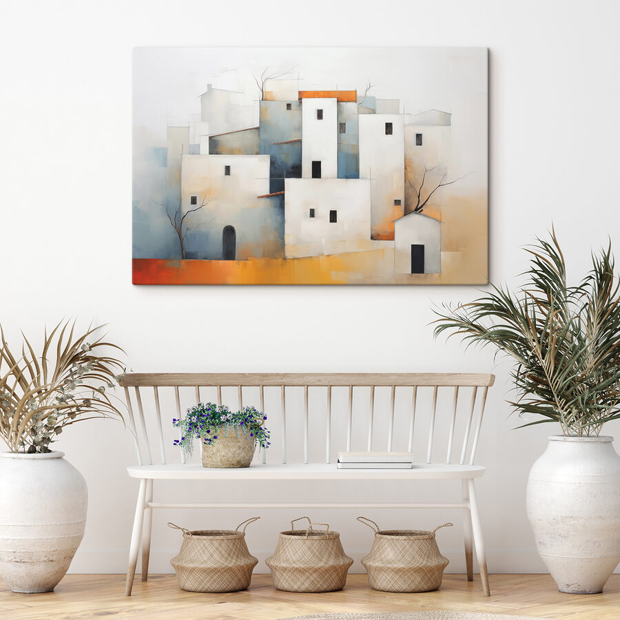 Verwandeln Sie jeden Raum mit einem Leinwanddruck, der mehr als nur Kunst ist – er ist ein Fenster zu einer anderen Welt. Stellen Sie sich eine bezaubernde Ansammlung von Gebäuden mit ihren strahlend weißen Wänden vor, anmutig eingebettet in sanfte, gedämpfte Farben. Dieses Werk vermittelt ein Gefühl der Ruhe, fast wie ein sanftes Flüstern, das Sie zum Entdecken einlädt. Stellen Sie sich vor, wie es eine gemütliche Leseecke erhellt oder Gespräche in einem lebhaften Wohnzimmer anregen könnte. Jeder Blick entführt Sie in ein heiteres Dorf, auch wenn es nur in Ihrem eigenen Zuhause ist. Perfekt für alle, die von Abenteuern träumen und dabei den Komfort ihres Zuhauses genießen wollen. Und wer weiß? Vielleicht inspiriert es ja jemanden dazu, den Pinsel in die Hand zu nehmen!