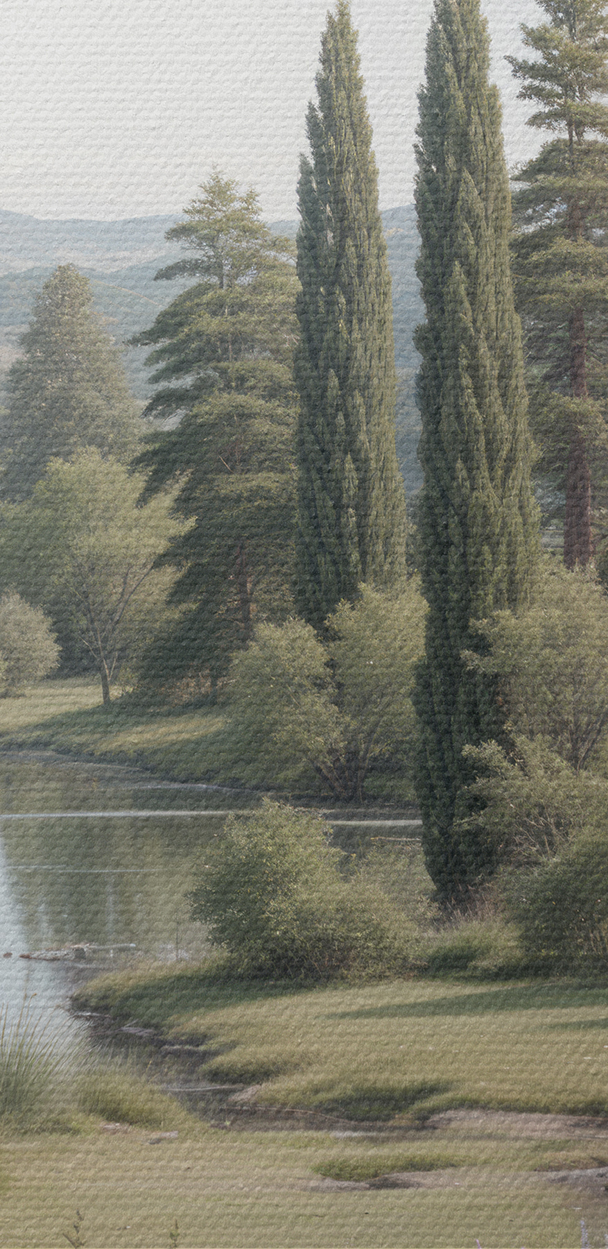 Stellen Sie sich das direkt über Ihrer Couch vor. “Wandbilder s40579” erweckt Ihre Wände mit einer heiteren Szene direkt aus einem verträumten Garten an einem fantastischen Ort zum Leben. Als Teil unserer Blumen- und Natur-Leinwandbilder-Kollektion hat es eine magische Ausstrahlung, nicht wahr? Die üppigen Zypressen spiegeln sich perfekt im Wasser – es ist, als würde man in ein Märchen eintauchen. Das sanfte Licht und diese zarten Blumen? Man kann fast eine sanfte Brise spüren, wenn man nur hinschaut.