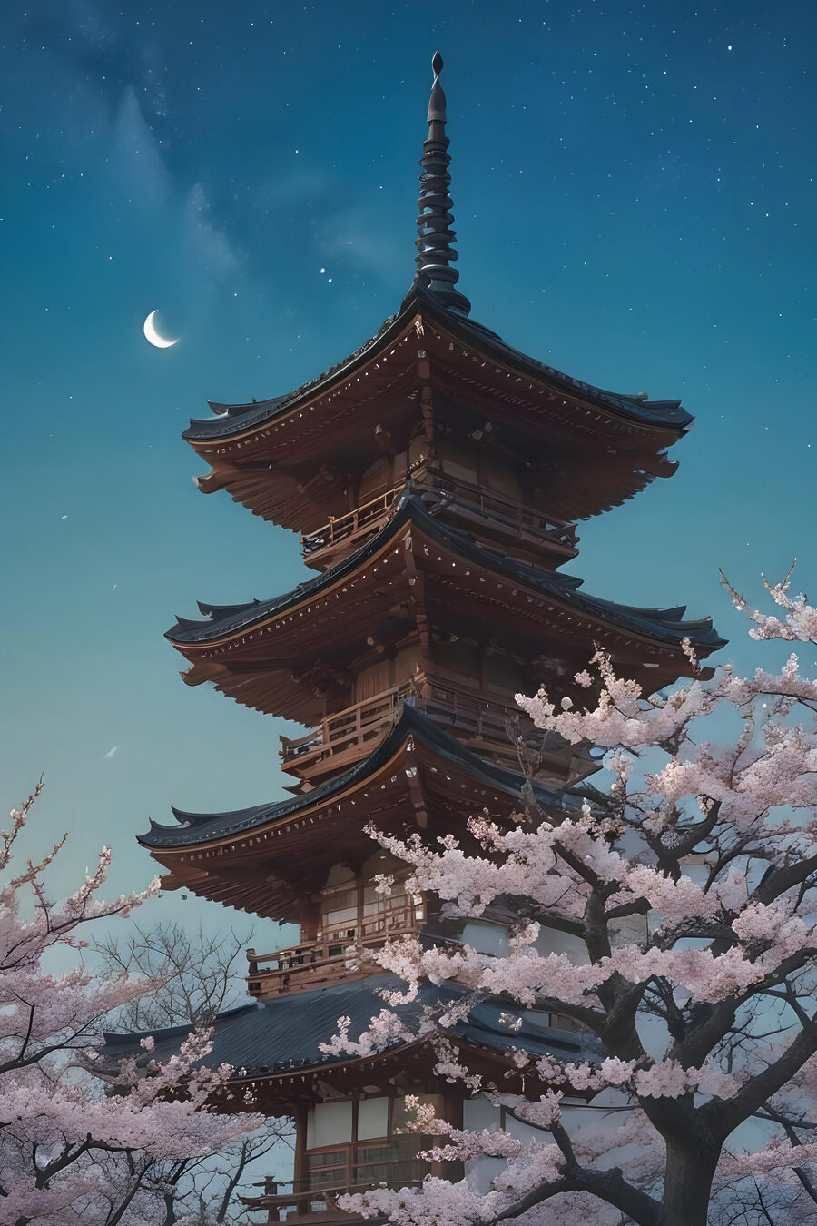 Versetzen Sie sich mit dem Leinwandbild “Pagode mit Kirschblüten” in einen heiteren Frühlingsabend. Es ist wie ein Mini-Urlaub an Ihrer Wand. Stellen Sie sich eine majestätische Pagode vor, die anmutig unter einem dämmrigen Himmel steht, umgeben von zarten rosa Kirschblüten. Es ist eine perfekte Mischung aus Architektur und Natur, eine beruhigende Szene, die Ruhe ausstrahlt.