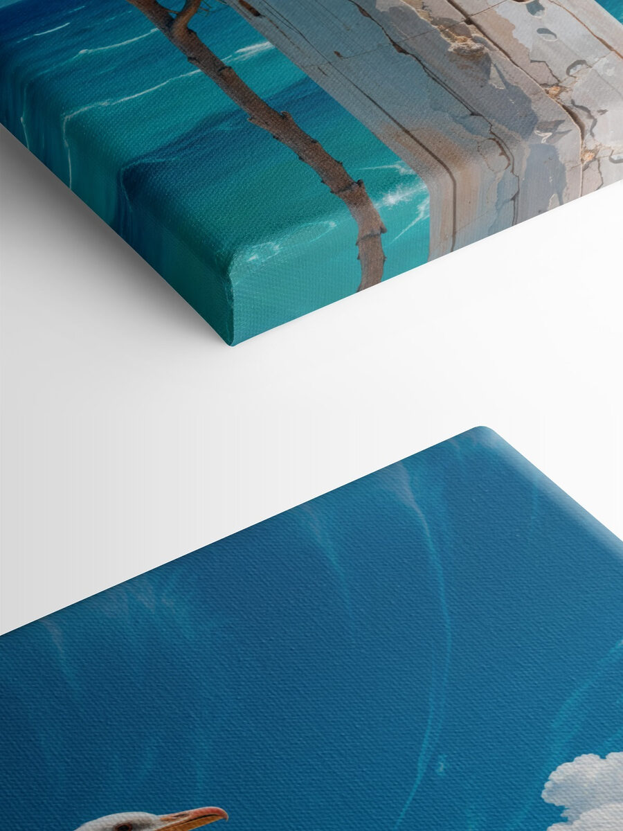 Holen Sie sich mit diesem Leinwandbild, das eine Möwe zeigt, die selbstbewusst auf einem Holzpfosten sitzt, einen Hauch von Meer in Ihr Zuhause. Stellen Sie sich das sanfte Rauschen der Wellen und die salzige Luft vor, wenn dieses eindrucksvolle Bild in Ihrem Wohnraum hängt. Es ist, als hätten Sie ein kleines Stückchen Strand, nur ohne den Sand in Ihren Schuhen. Der strahlend blaue Himmel und das lebhafte Meer sind ein echter Hingucker und eignen sich perfekt für jeden Raum, der einen Hauch von Naturschönheit braucht. Ob es sich um eine gemütliche Leseecke oder einen lebhaften Essbereich handelt, dieses Kunstwerk bringt ruhige Stimmung und einen Hauch von Persönlichkeit in Ihre Einrichtung. Und wer kann schon der entspannten Eleganz eines Küstenvogels widerstehen, der einfach nur die Aussicht genießt?