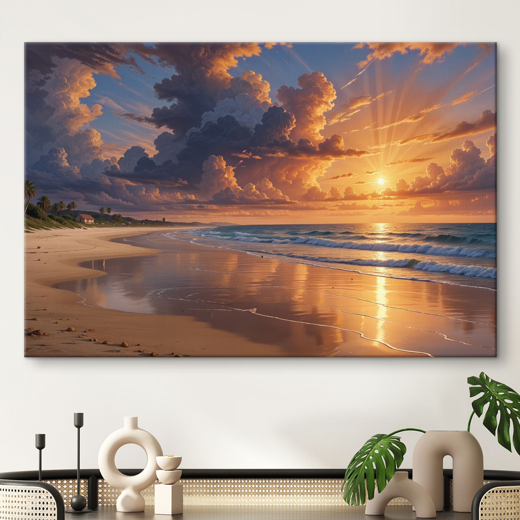 Dieser Leinwanddruck “Sonnenuntergang über einem Strand” ist mehr als nur ein Bild; er ist ein Mini-Urlaub direkt an Ihrer Wand. Stellen Sie sich vor, Sie kommen nach einem langen Tag nach Hause, ziehen Ihre Schuhe aus und werden von dieser atemberaubenden Szene begrüßt. Die Wellen flüstern praktisch: “Entspann dich, du hast es dir verdient.” Und diese Farben! Sie sind die Art und Weise, wie die Natur sie zur Schau stellt – feurige Orangetöne und zarte Rosatöne tanzen über den Himmel. Perfekt für jeden Raum, der ein wenig Gelassenheit braucht. Es ist wie eine tägliche Erinnerung daran, einen Strandausflug zu planen oder einfach einen friedlichen Moment zu Hause zu genießen.
