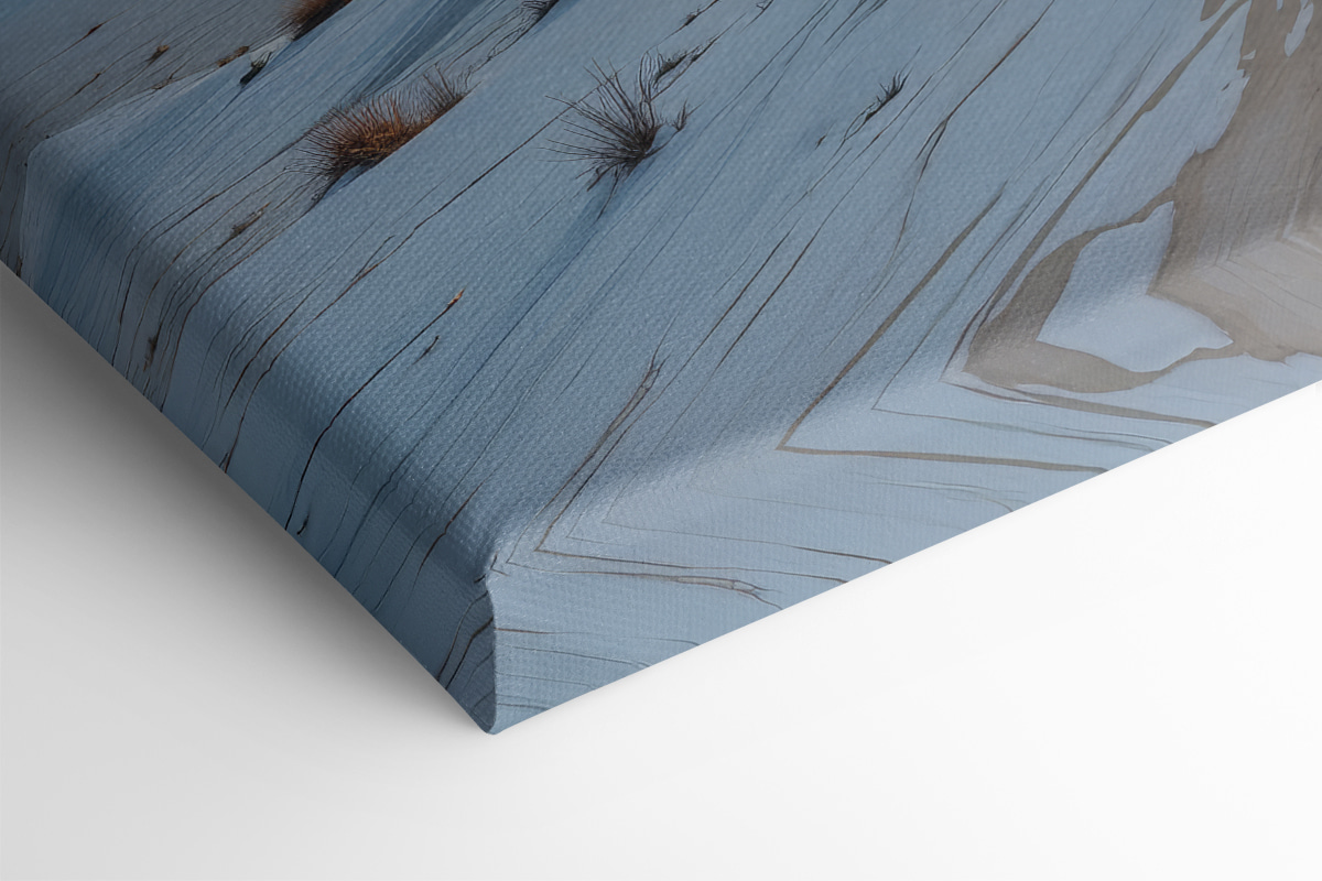 Stellen Sie sich eine Welt vor, in der die Zeit stillsteht. Diese Leinwand zeigt eine Frau, die anmutig durch schneebedeckte Dünen wandert, eingerahmt von majestätischen Bergen unter einem verträumten Mondhimmel. Irgendetwas an dieser ruhigen Schönheit scheint die Geheimnisse der Natur zu flüstern. Perfekt für die gemütlichen Ecken in Ihrem Zuhause, die einen Hauch von Ruhe brauchen. Es ist die Art von Kunstwerk, die zu Tagträumen und ruhigen Momenten einlädt und die Sehnsucht nach einer Tasse heißem Kakao weckt, während Sie über die einfachen Freuden des Lebens nachdenken. Eine wahre Flucht auf Leinwand.