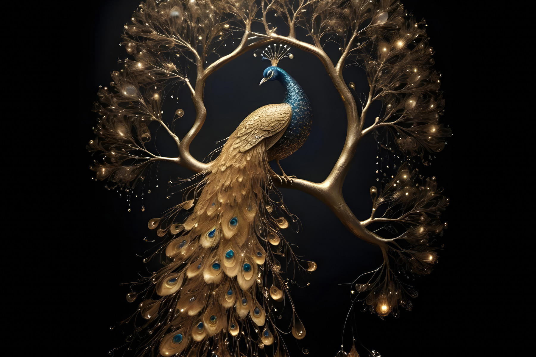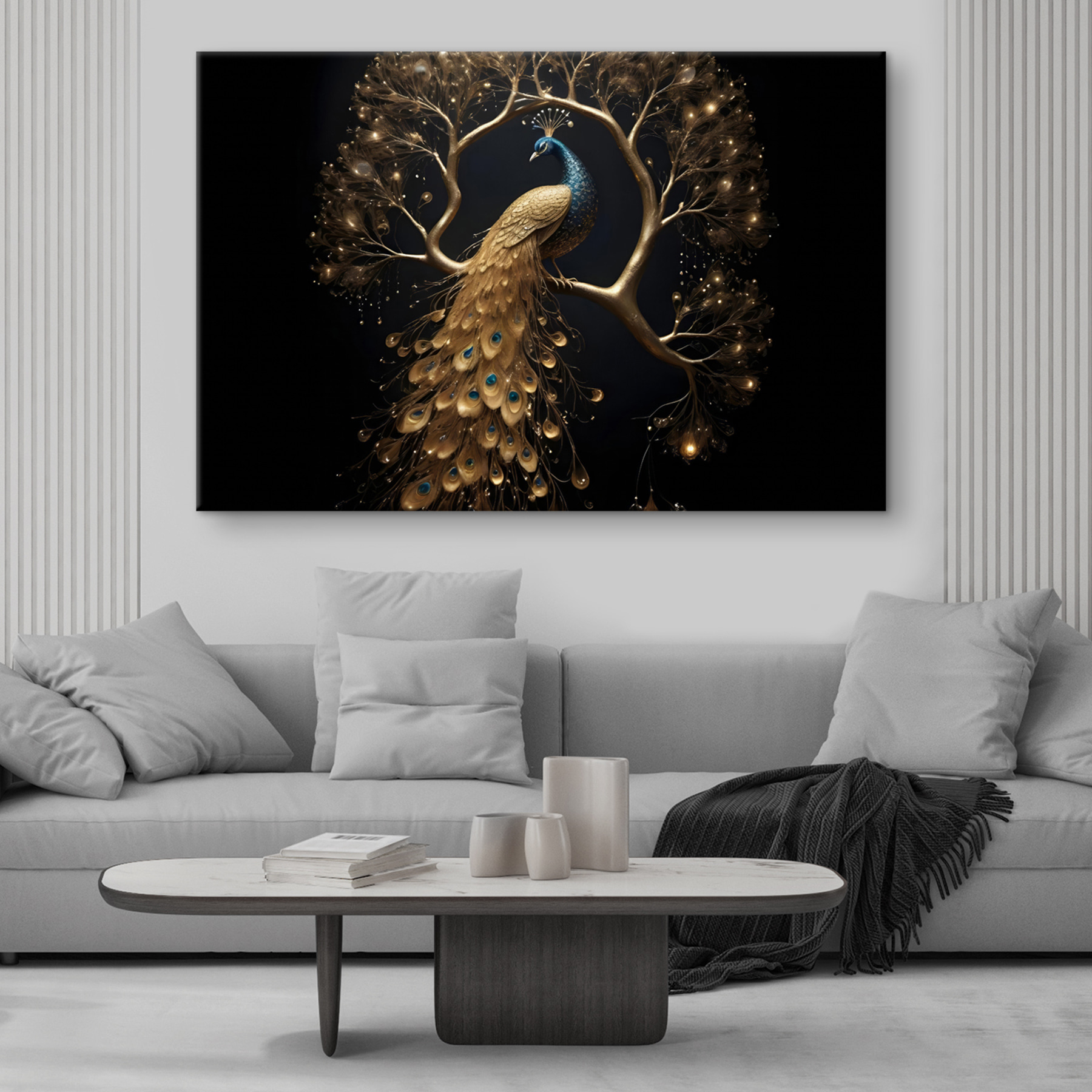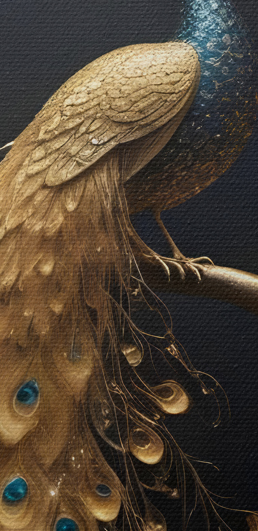 Stellen Sie sich vor: ein Pfau, der sich im Schoß der Natur räkelt – was für ein Anblick, nicht wahr? Mit all den prächtigen Federn und einem Hauch von Geheimnis ist es, als würde man einen geheimen Garten betreten, in dem Eleganz und Charme ihr Lager aufgeschlagen haben. Perfekt, um jedem Raum einen Hauch von natürlicher Dramatik zu verleihen. Freunde könnten einfach hereinspazieren und länger bleiben, verzaubert von seiner anmutigen Anziehungskraft. Es ist wie ein Meisterwerk der Natur – nur ohne das lästige Vogelfutter. Perfekt, um Gespräche anzuregen oder um sich einfach in seiner verschlungenen Schönheit zu verlieren.