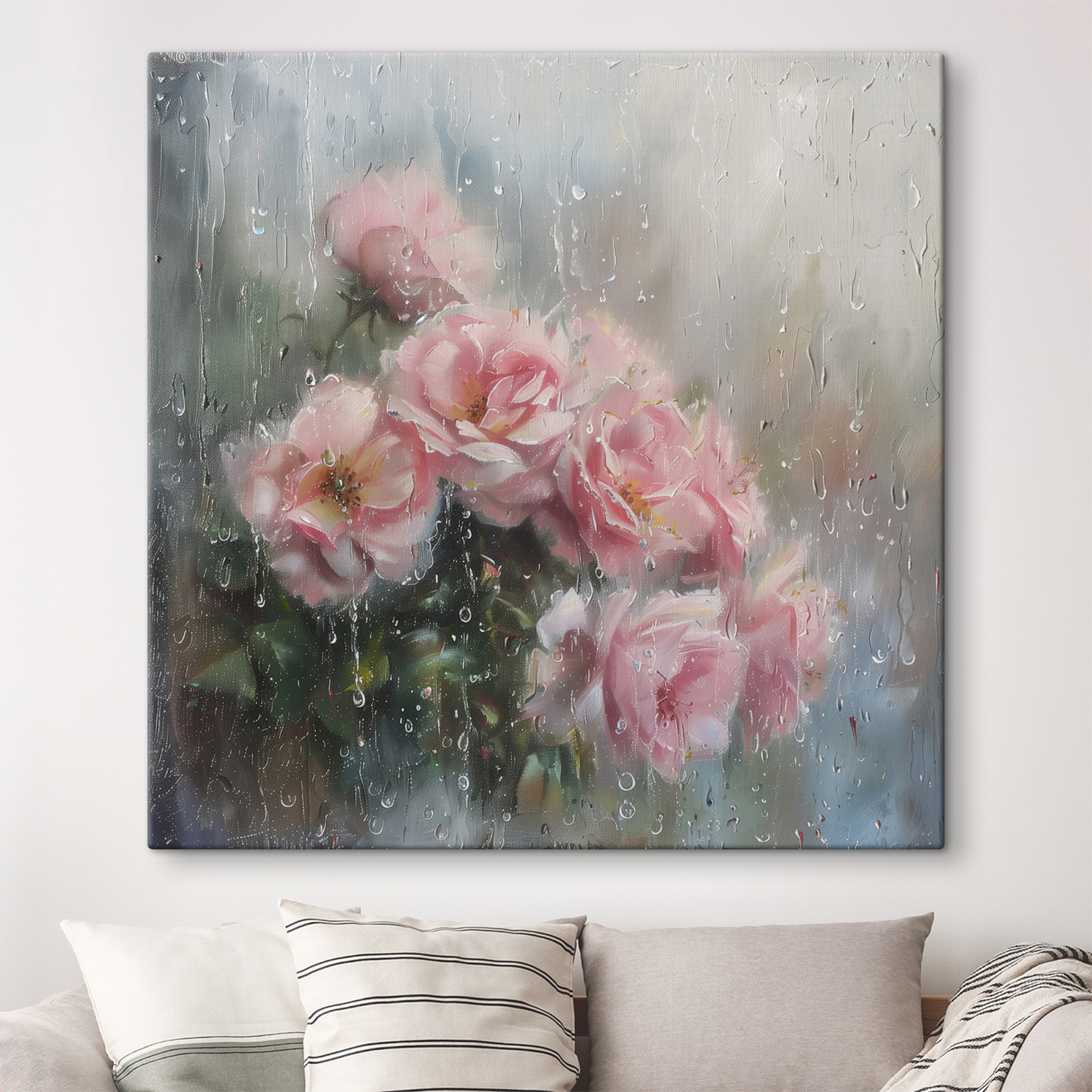 Traumhaft, oder? “Leinwanddrucke: Roses Veiled by Rain’s Gentle Touch” entführt Sie an einen nebligen Morgen, an dem sich zartrosa Blüten hinter einem verspielten Tanz von Regentropfen verstecken. Es ist wie ein geheimer Garten, eingefroren in der Zeit. Stellen Sie es sich an Ihrer Wand vor und lassen Sie sich an einen Ort entführen, an dem der Regen Geheimnisse flüstert und sich jedes Blütenblatt wie eine Umarmung der Natur anfühlt. Perfekt für alle, die sich nach etwas Zartem und doch Kühnem sehnen. Es ist wie ein kleiner Spritzer Poesie in Ihrem Wohnzimmer – erwarten Sie jedes Mal ein Lächeln, wenn Sie daran vorbeigehen.