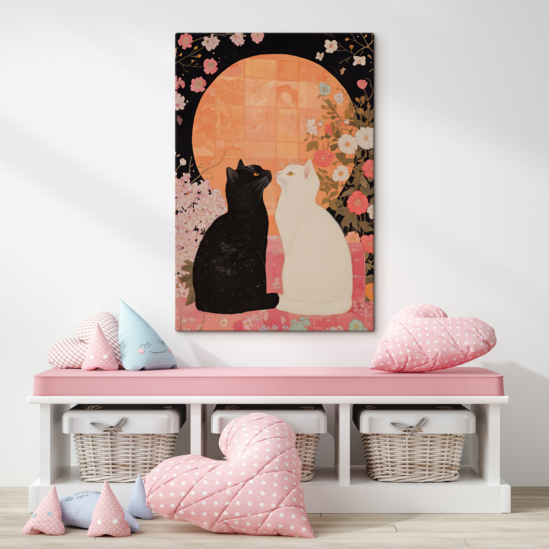 Bringen Sie einen Hauch von Skurrilität in Ihren Raum mit der Leinwand “Black and White Cats Looking at Each Other”. Stellen Sie sich das vor: zwei Katzen, so unterschiedlich wie Tag und Nacht, die unter einem sanften, warmen Licht eine unausgesprochene Verbindung eingehen. Es ist, als würden sie Geheimnisse des Universums austauschen – oder einen spielerischen Angriff planen. Dieses Stück verbindet den Charme der tierischen Gesellschaft mit zarten Blumendetails und ist perfekt für alle, die eine Mischung aus Natur und Neugierde lieben. Stellen Sie es sich in Ihrem Wohnzimmer vor und verleihen Sie ihm einen Hauch von katzenhafter Finesse. Es ist mehr als Kunst – es ist ein Gesprächsanlass!