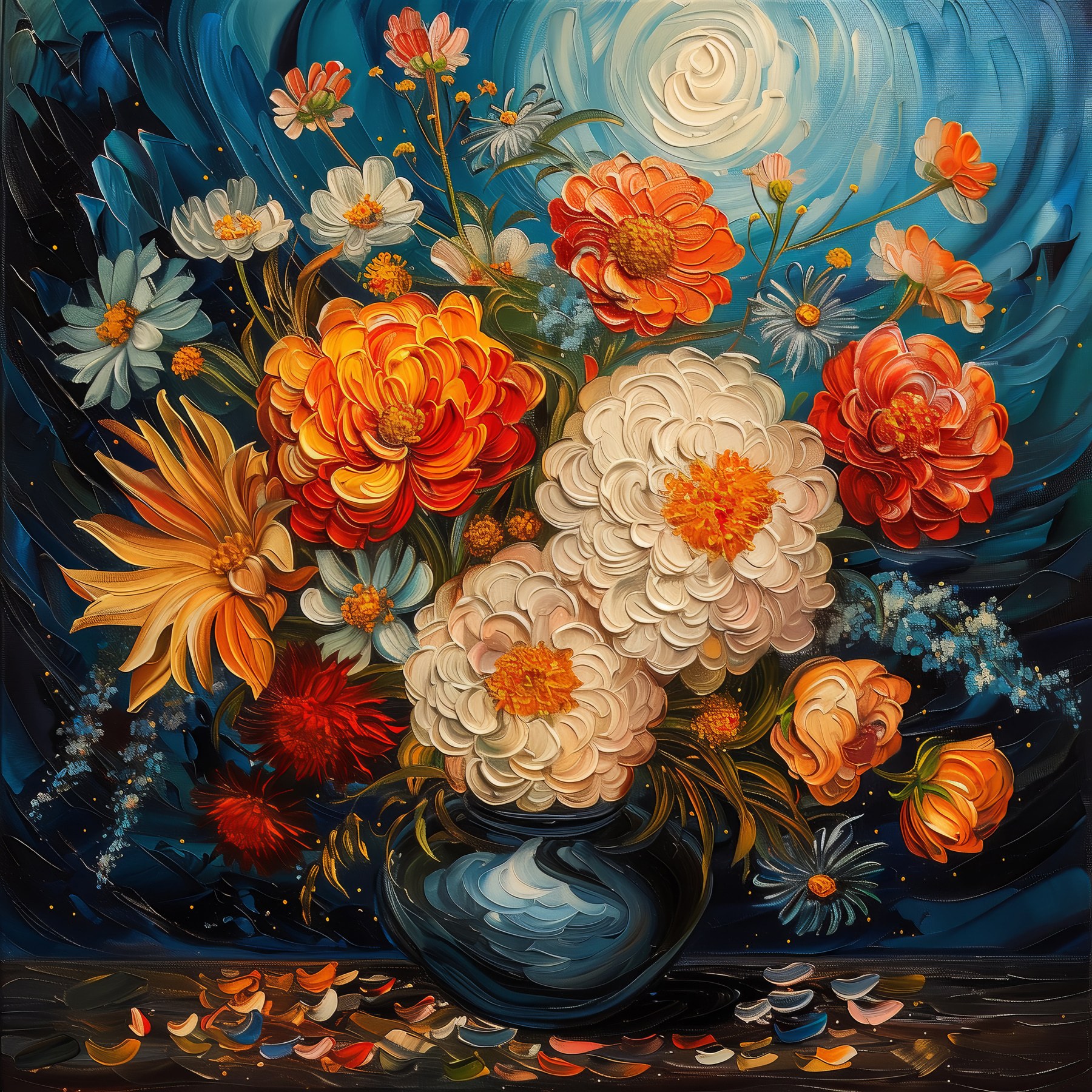 Stellen Sie sich vor, Sie kommen in Ihr Wohnzimmer, und da stehen sie – diese lebendigen Blumen in einer Vase, auf Leinwand gebannt! Die Farben leuchten wie ein freches Augenzwinkern an einem grauen Tag. Es ist, als würden sie Geschichten von warmen Sommernächten und geheimen Gärten flüstern, genau dort an Ihrer Wand. Perfekt für jeden, der Schönheit in einem kleinen organisierten Chaos sieht. Dieses Stück fühlt sich an wie eine warme Umarmung – es erfüllt jeden Raum mit Lebendigkeit und Charme. Blumen, die nie verwelken, ein zeitloser Gesprächsanlass. Wer würde das nicht wollen?