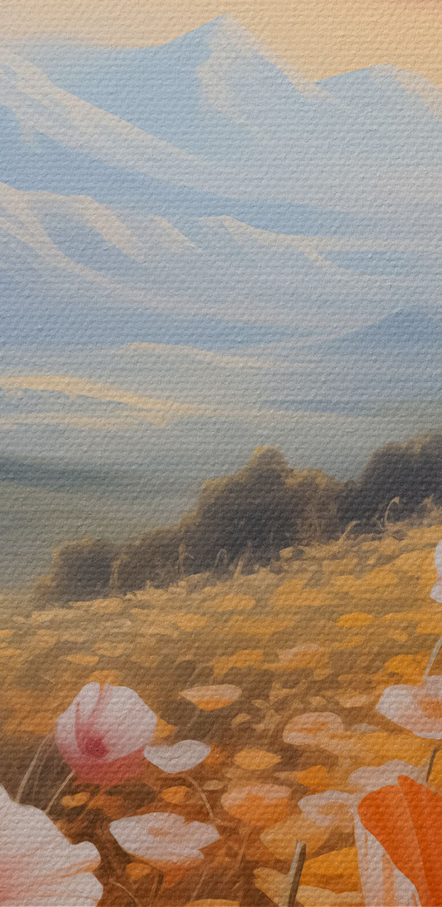 Stellen Sie sich vor, Sie wachen auf und sehen ein Feld voller leuchtender Blumen, die sich sanft im Wind wiegen. Dieser Leinwanddruck – eine verträumte Landschaft in blühenden Farben mit majestätischen Bergen im Hintergrund – holt ein Stückchen Paradies in Ihr Zimmer. Es ist, als würde man eine sonnige Wiese betreten, auf der die Zeit stehen bleibt und man die frische Blüte, gemischt mit einem Hauch von Bergluft, fast riechen kann. Ein wohltuender Rückzugsort an der Wand, der an einem trüben Tag ein Lächeln hervorzaubert oder zu einem angeregten Gespräch beim Kaffee einlädt. Hier blüht das Glück!