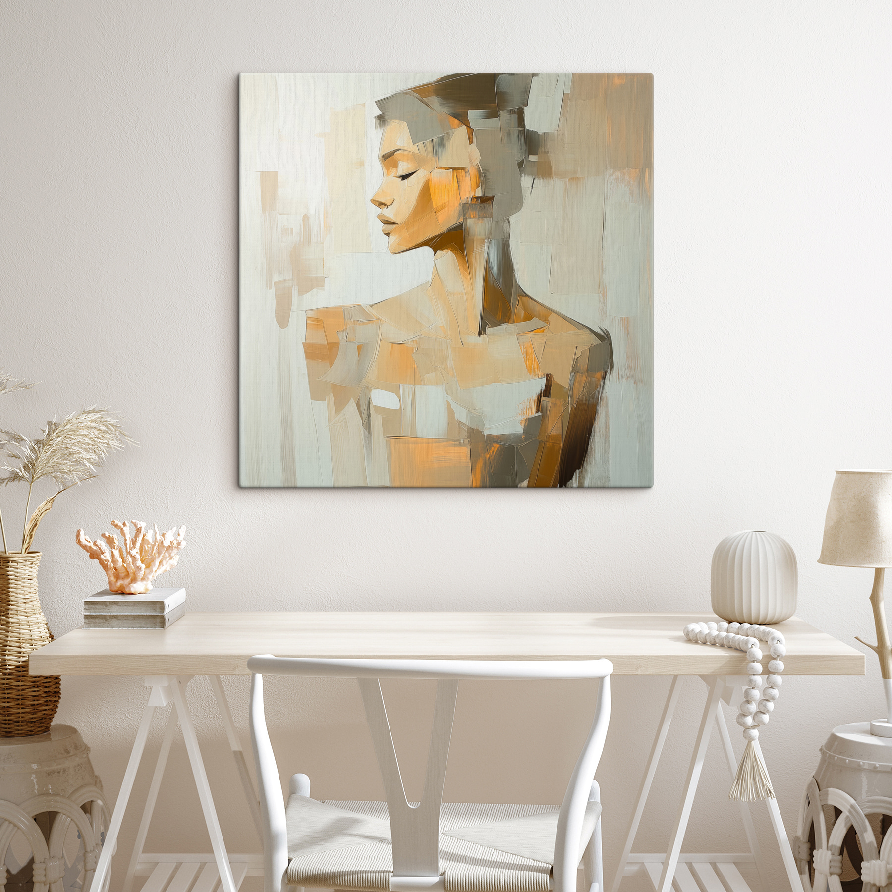 Tauchen Sie mit “Abstrakte Kontemplation in Beigetönen” in eine Welt voller verträumter Eleganz ein. Dieses Bild strahlt Ruhe aus, wie eine warme Tasse Kamille an einem regnerischen Tag. Die subtilen, sanften Farbtöne laden zur Selbstbeobachtung ein – perfekt, um eine ruhige Ecke zu schaffen, ohne auf Meditations-Apps zurückgreifen zu müssen. Stellen Sie sich vor, Sie kommen nach einem hektischen Tag nach Hause, blicken auf dieses Stück und spüren, wie sich Ihre Schultern ein wenig senken. Es ist, als würde man sich ein Stück Zen an die Wand hängen, nur ohne den Weihrauch! Eine charmante Ergänzung für jeden Raum, der sich nach einem Hauch heiterer Raffinesse sehnt.