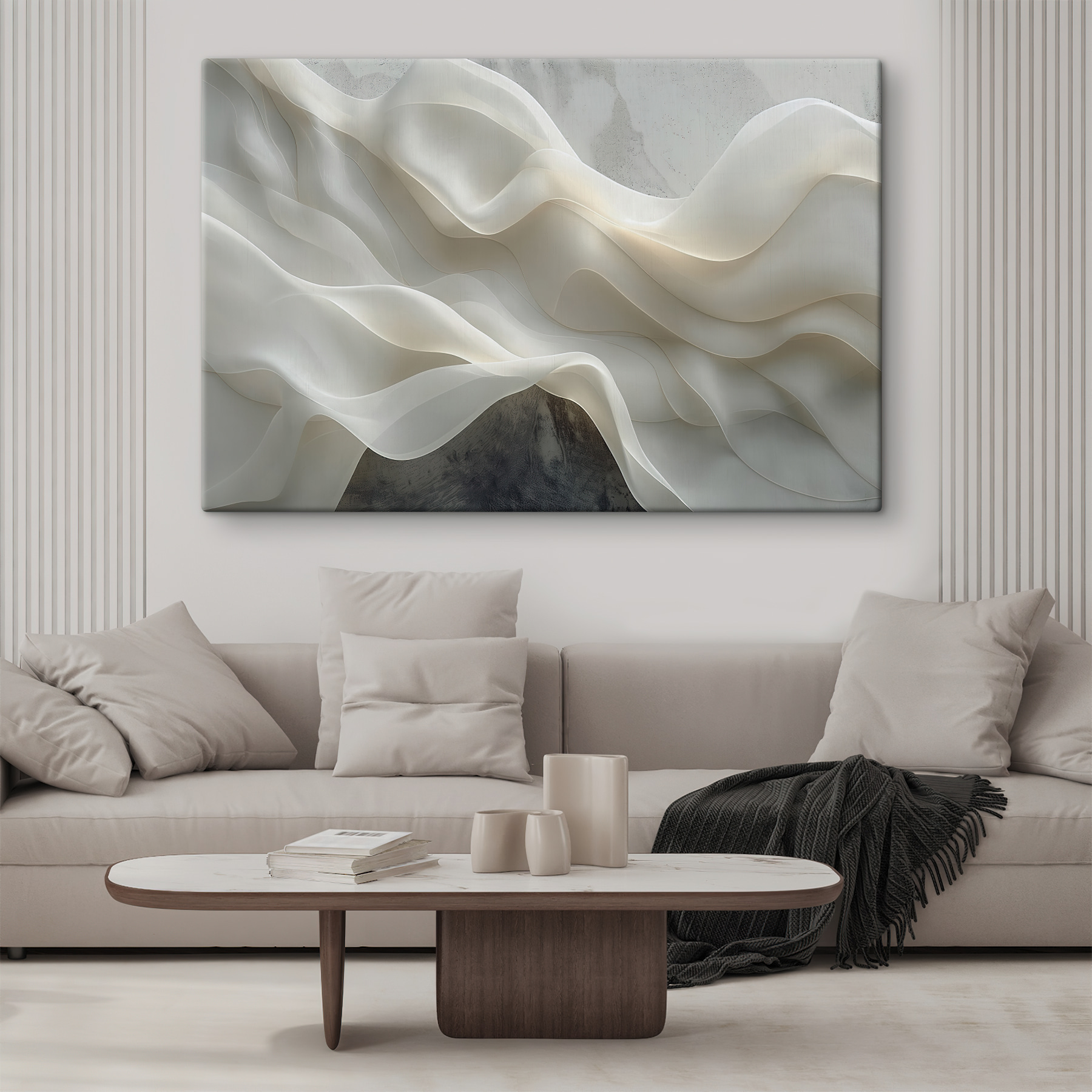 Stellen Sie sich vor, Sie betreten einen Raum und werden vom anmutigen Tanz der Stoffwellen begrüßt – dieses Leinwandbild fängt diese heitere Bewegung perfekt ein. Es ist, als würde eine sanfte Brise an Ihrer Wand gefrieren und Ihnen Eleganz zuflüstern. Perfekt für die Tage, an denen sich das Leben ein wenig zu chaotisch anfühlt, bietet dieses Kunstwerk einen beruhigenden Ausweg. Das Licht- und Schattenspiel erzeugt eine Tiefe, als ob der Stoff nach Ihnen greifen und Sie berühren würde. Es ist eine reizvolle Mischung aus Einfachheit und Stil – ein müheloser Gesprächsanlass, der sich wie eine warme Umarmung für Ihre Augen anfühlt.