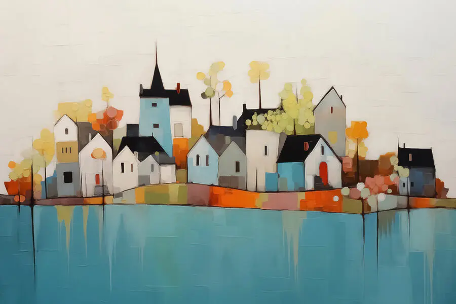 Dieses Gemälde “Wandbilder Painting of Houses and Trees” bringt einen Hauch von Laune und Charme in jeden Raum. Stellen Sie sich einen faulen Sonntagnachmittag vor – Sie machen es sich mit einem guten Buch gemütlich, und diese fröhliche Dorfszene lädt Sie direkt ein. Die sanften Farben und abstrakten Striche verschmelzen Architektur und Natur, fast wie ein Tagtraum, der auf Leinwand festgehalten wurde. Es ist perfekt für alle, die einen Hauch von Nostalgie mit einem modernen Touch lieben. Freunde könnten es sogar mit einer Postkarte aus einer Kleinstadt verwechseln – und wer liebt nicht ein bisschen von diesem gemütlichen, heimeligen Gefühl?