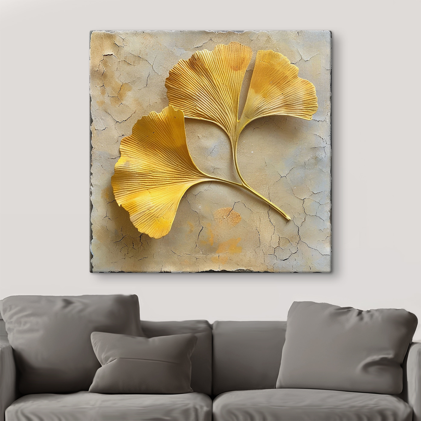 Dieser Leinwanddruck mit leuchtend gelben Blättern, die sich auf einer strukturierten, erdigen Oberfläche ausbreiten, bringt Farbe an die Wand. Es ist, als ob man sich ein Stück Natur ins Haus holt, ohne all die unordentlichen Blätter! Stellen Sie sich vor, Sie machen es sich gemütlich, trinken einen Tee und werfen einen Blick auf diese Blätter – perfekt, um von einem sonnigen Nachmittag im Park zu träumen. Die Farbmischung spielt wunderbar mit dem Licht und erzeugt eine warme, einladende Energie. Es ist nicht nur Dekoration, sondern eine kleine Erinnerung an den Charme der Natur, die Ihre Besucher zum Innehalten und Lächeln bringen wird. Ideal für die Nische, die einen Aufschwung braucht!