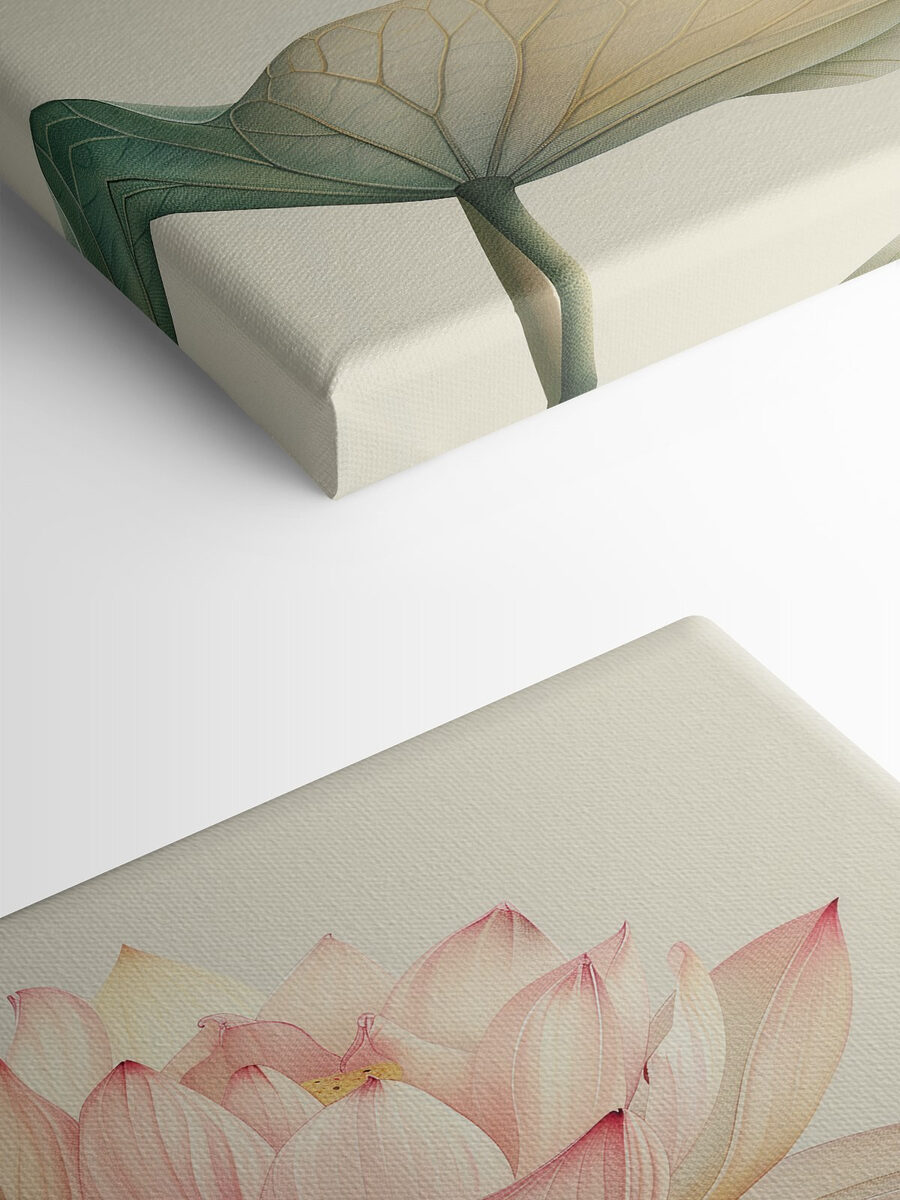 “Leinwanddrucke Elegant Lotus in sanften Pastelltönen” ist wie ein sanftes Geflüster von Eleganz, das Ihren Raum verschönert. Stellen Sie sich einen gemütlichen Sonntagmorgen vor, mit einem Kaffee in der Hand, und genießen Sie die Gelassenheit. Diese sanften Pastellfarben – sind sie nicht einfach herrlich? Es ist, als hätte der Raum einen beruhigenden Atemzug getan. Die Leute finden sich oft in einem Tagtraum wieder, wenn es in der Nähe ist. Perfekt für die Momente, in denen man ein bisschen Natur braucht, ohne die Gießkanne. Tauchen Sie ein in die Ruhe – Sie brauchen keinen grünen Daumen!