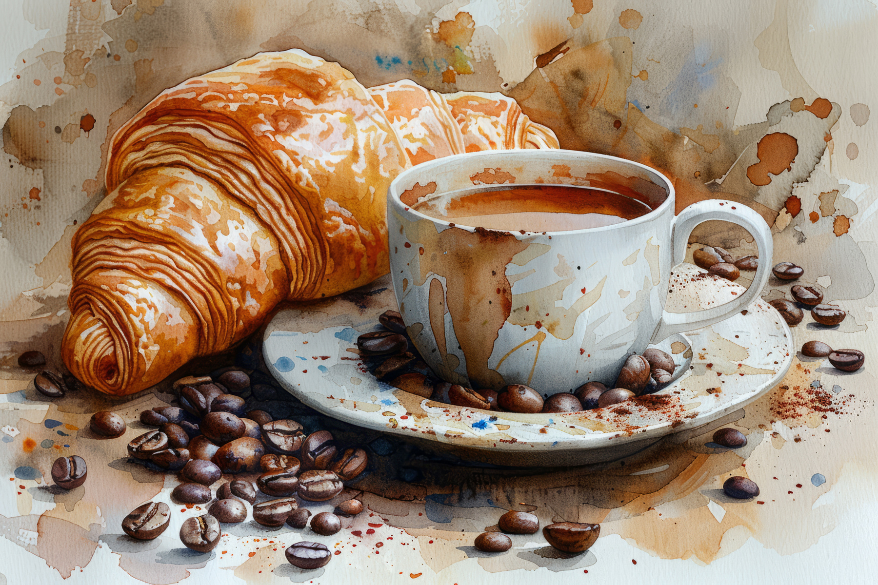 Haben Sie jemals das Gefühl, dass Ihre Wand eine kleine Aufmunterung gebrauchen könnte? Hier ist dieser Aquarell-Leinwanddruck, auf dem eine Tasse Kaffee und ein perfekt gebackenes Croissant die Show stehlen. Es ist, als ob du die gemütliche Ecke deines Lieblingscafés einfangen würdest, nur ohne den Lärm. Stellen Sie sich vor, wie das warme Aroma durch Ihren Raum weht! Perfekt für Küchen oder Essbereiche – einfach überall, wo man von einem Frühstück in Paris träumt. Ob Sie nun ein Kaffeeliebhaber sind oder einfach nur ein gutes Gebäck zu schätzen wissen, dieses Kunstwerk verleiht Ihrem Tag einen Hauch von köstlichem Charme.