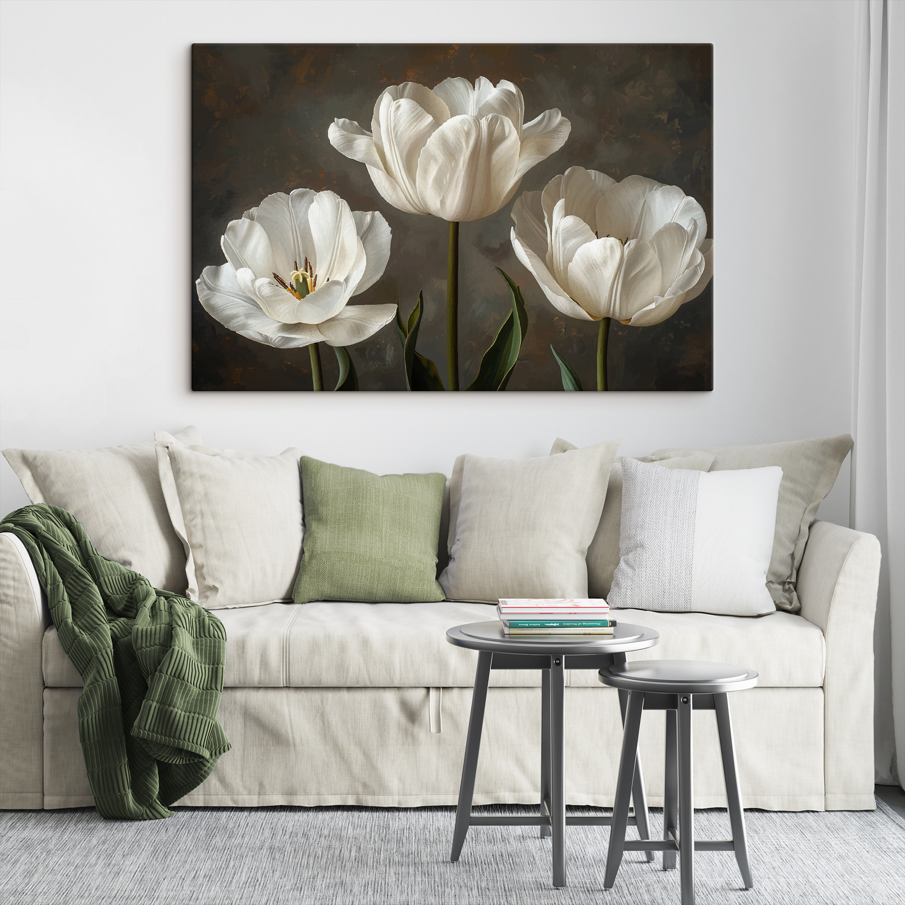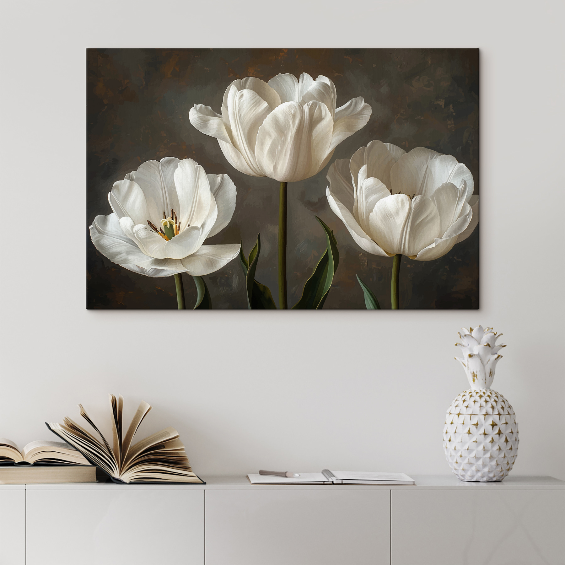 Stellen Sie sich vor, Sie betreten einen Raum und haben das Gefühl, in einem friedlichen Garten zu sein – ziemlich cool, oder? Dieser Leinwanddruck mit einer Gruppe eleganter weißer Blumen tut genau das. Es ist nicht nur Kunst, sondern ein sanftes Geflüster der Natur direkt an Ihrer Wand. Perfekt für trübe Tage, an denen Sie einfach nur einen Hauch von frischer Luft brauchen, ohne Pflanzen (kein Gießen erforderlich!). Ob in einer gemütlichen Ecke oder einem belebten Wohnzimmer, diese Blumen blühen mit Charme und Ruhe und lassen Ihren Raum sofort heller erscheinen.