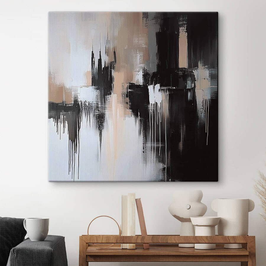 Wir stellen Ihnen das “Wandbilder Black and White Painting” vor – ein reizvoller Farbtupfer für jeden Raum. Dieses Kunstwerk verbindet mühelos Eleganz und Modernität mit seinen eleganten, kühnen Linien und subtilen Tropfen. Stellen Sie sich vor, Sie betreten einen Raum, in dem dieses Kunstwerk hängt, und fühlen sich sofort wie in einem gemütlichen Café an einem regnerischen Tag. Die Mischung aus Schwarz, Weiß und sanften Tönen verleiht dem Bild eine warme Note, ohne zu aufdringlich zu sein. Es ist perfekt für alle, die einen Gesprächsanlass oder einfach nur eine beruhigende Atmosphäre nach einem hektischen Tag suchen. Diese Leinwand strahlt Raffinesse aus und ist damit der ideale Hintergrund für herzliche Gespräche oder ruhige Momente mit einem Buch. Und wer hätte gedacht, dass Schwarz und Weiß so lebendig wirken können? Geben Sie Ihren Wänden etwas Persönlichkeit!