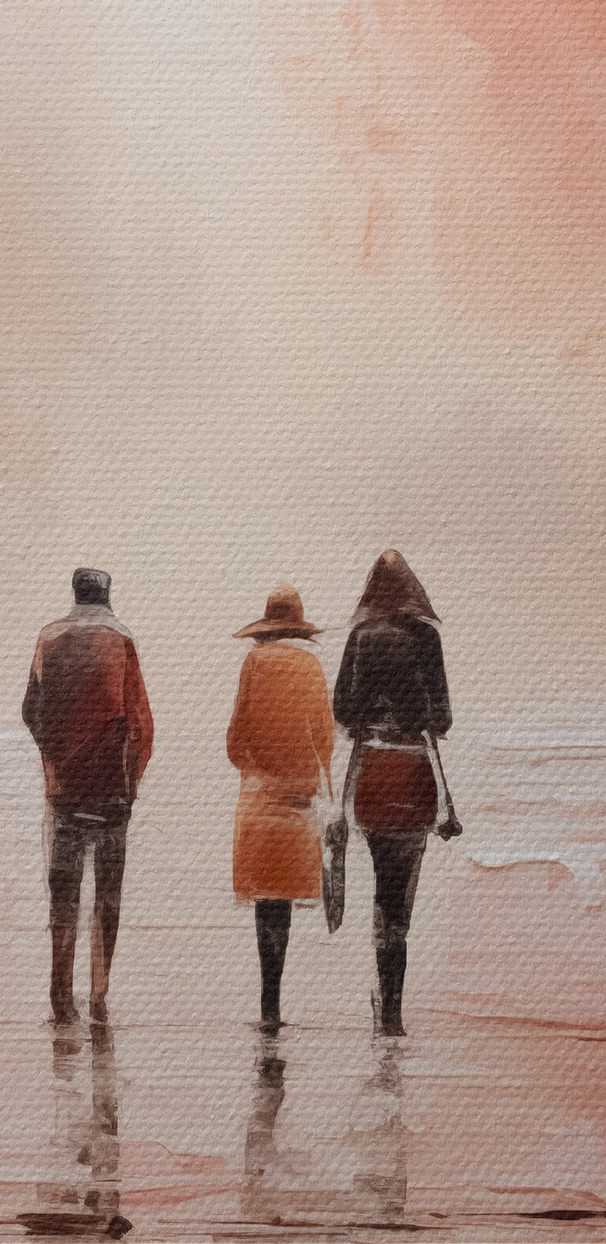 Stellen Sie sich vor: ein Spaziergang an einem verregneten Tag, der in ein Kunstwerk verwandelt wurde. “Wandbilder Group of People Walking on a Wet Street” fängt die Essenz dieser heiteren, nachdenklichen Momente ein, wenn ein sanfter Nieselregen die Stadt zum Leben erweckt. Mit seinen sanften Farben und der Art und Weise, wie sich die Figuren elegant in die Aquarellmagie einfügen, bringt dieses Werk eine gemütliche Atmosphäre in jeden Raum. Perfekt, um eine leere Wand aufzupeppen, auf die Sie schon lange starren. Betrachten Sie es einfach als eine visuelle Flucht – ohne dass Sie einen Regenschirm suchen müssen!