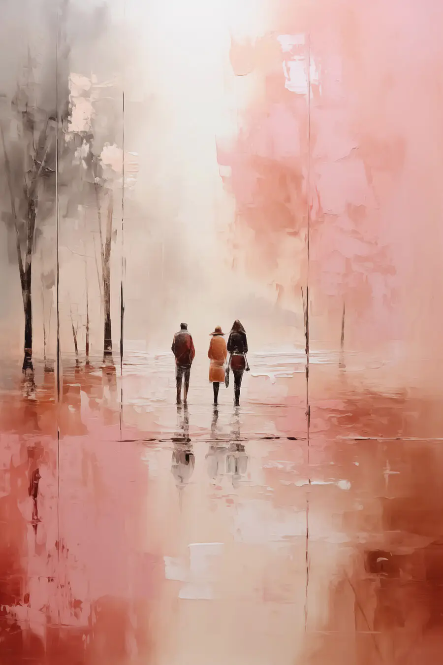 Stellen Sie sich vor: ein Spaziergang an einem verregneten Tag, der in ein Kunstwerk verwandelt wurde. “Wandbilder Group of People Walking on a Wet Street” fängt die Essenz dieser heiteren, nachdenklichen Momente ein, wenn ein sanfter Nieselregen die Stadt zum Leben erweckt. Mit seinen sanften Farben und der Art und Weise, wie sich die Figuren elegant in die Aquarellmagie einfügen, bringt dieses Werk eine gemütliche Atmosphäre in jeden Raum. Perfekt, um eine leere Wand aufzupeppen, auf die Sie schon lange starren. Betrachten Sie es einfach als eine visuelle Flucht – ohne dass Sie einen Regenschirm suchen müssen!