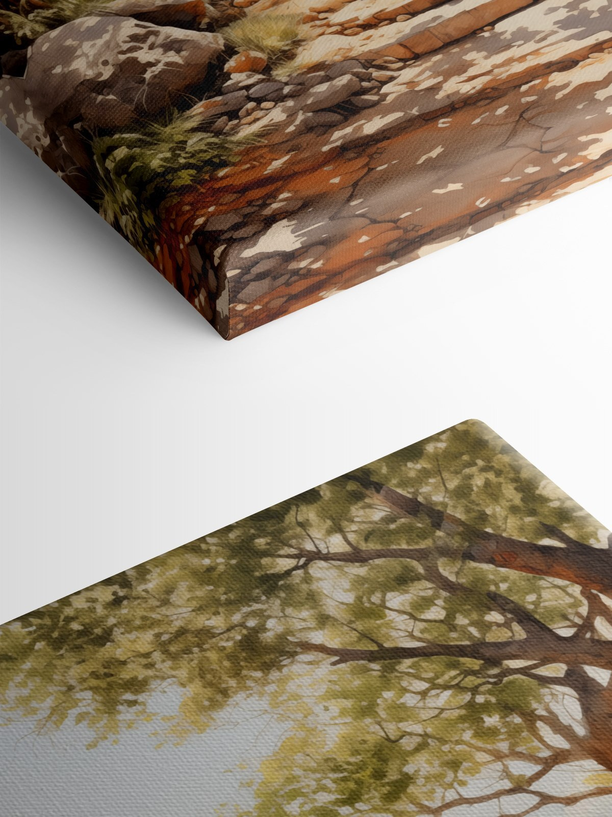 Stellen Sie sich vor: ein ruhiger Nachmittag, das Sonnenlicht dringt durch die Bäume, eine leichte Brise spielt mit den Blättern. Dieser Leinwanddruck mit seiner Steintreppe, die zu einer Wanderung in einen Waldtraum einlädt, weckt das Fernweh direkt in Ihrem Wohnzimmer. Es ist wie eine Szene aus einem Märchenbuch – wer hätte gedacht, dass eine einfache Wand einen solchen Zauber ausüben kann? Perfekt für Naturliebhaber und Tagträumer gleichermaßen, verwandelt es Ihren Raum in einen friedlichen Rückzugsort. Da bekommt man doch gleich Lust, Tee zu trinken und mit Eichhörnchen zu reden, oder?