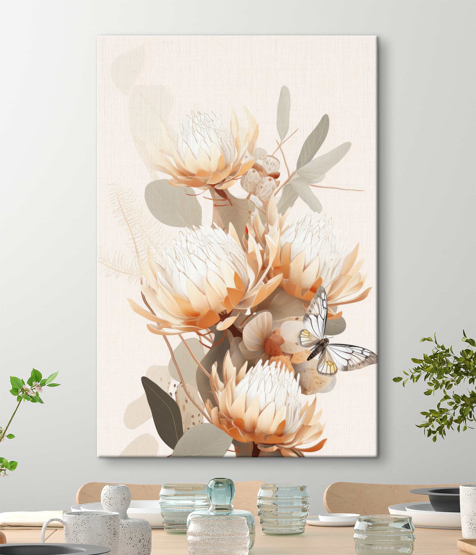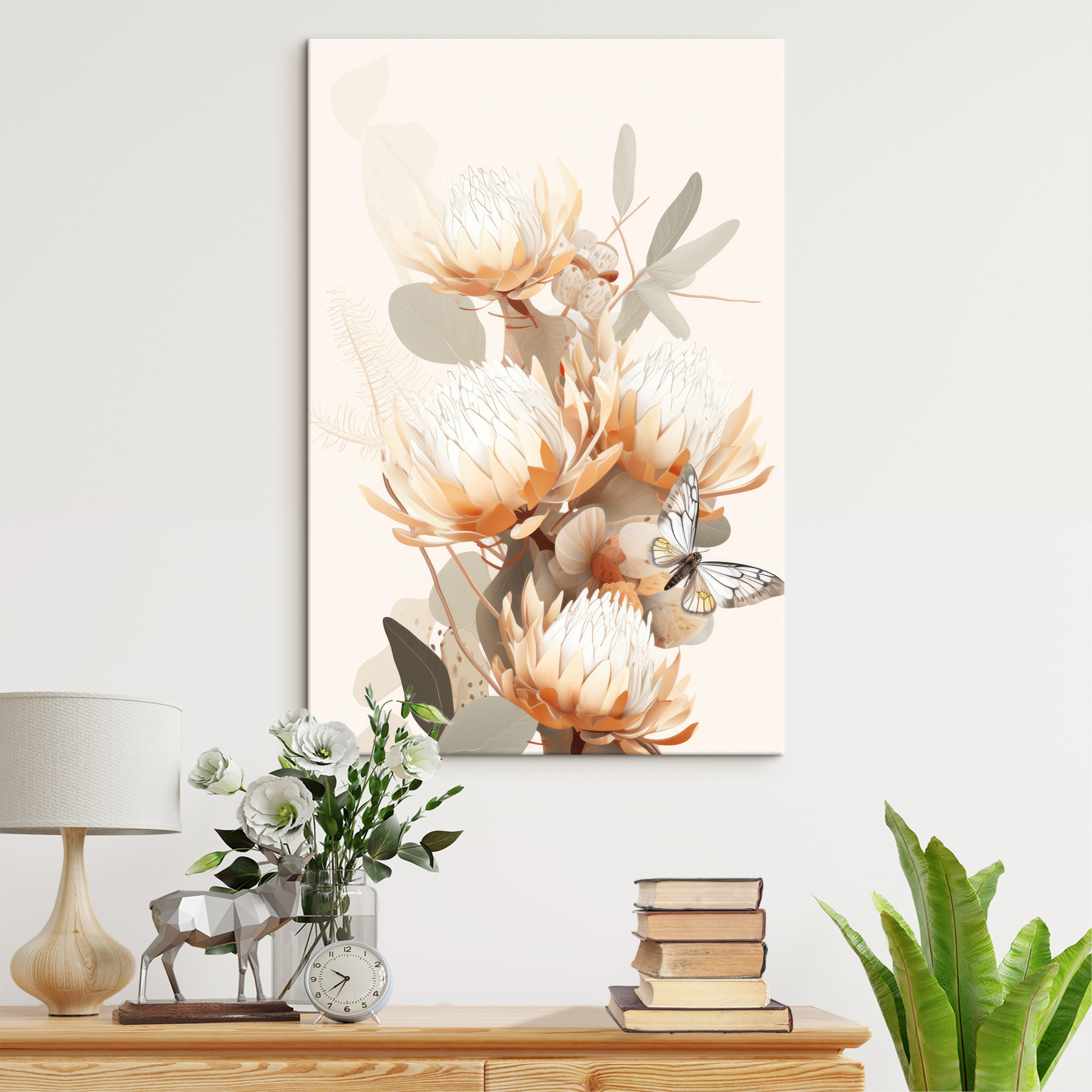 Stellen Sie sich vor, dass Ihre Wände mit diesem entzückenden Leinwanddruck “Schmetterling auf einer Blume” geschmückt sind – es ist, als ob Sie sich einen heiteren Garten in Ihr Zuhause holen. Dieses Bild strahlt Ruhe aus, mit pastellfarbenen Blumen, die einen zarten Schmetterling wiegen. Perfekt für alle, die Momente in der Natur voller Schönheit zu schätzen wissen. Stellen Sie sich vor: ein beruhigender Begleiter zu Ihrem Morgenkaffee, während die Sonne sanftes Licht auf diese visuelle Poesie wirft. Eine Kunst, die das Herz anspricht – kein Gießen nötig! Lassen Sie Ihren Raum mit Eleganz und Charme atmen.