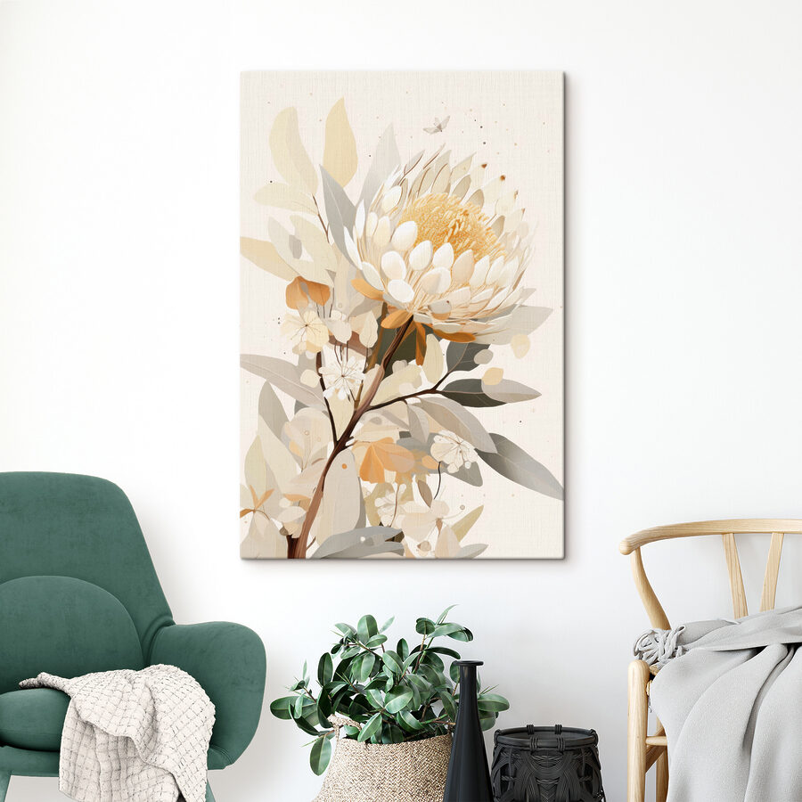 Holen Sie sich einen Hauch von Natur ins Haus mit diesem atemberaubenden Leinwanddruck mit einer verträumten weißen Blume und ihrem sonnengelben Zentrum. Es ist wie ein Hauch frischer Luft für jeden Raum, der sofort die Stimmung hebt und gleichzeitig die Atmosphäre kühl hält. Stellen Sie sich vor, wie Sie in einer gemütlichen Ecke Tee trinken, umgeben von sanften Farbtönen, die die Seele beruhigen und Freude bereiten. Egal, ob sie eine Wohnzimmerwand schmückt oder einem Flur Charakter verleiht, dieses Stück wird alle Blicke auf sich ziehen und Herzen erwärmen. Wer hätte gedacht, dass eine Blume so viel Leben in einen Raum bringen kann? Perfekt für Naturliebhaber oder alle, die ihr Zuhause verschönern wollen.