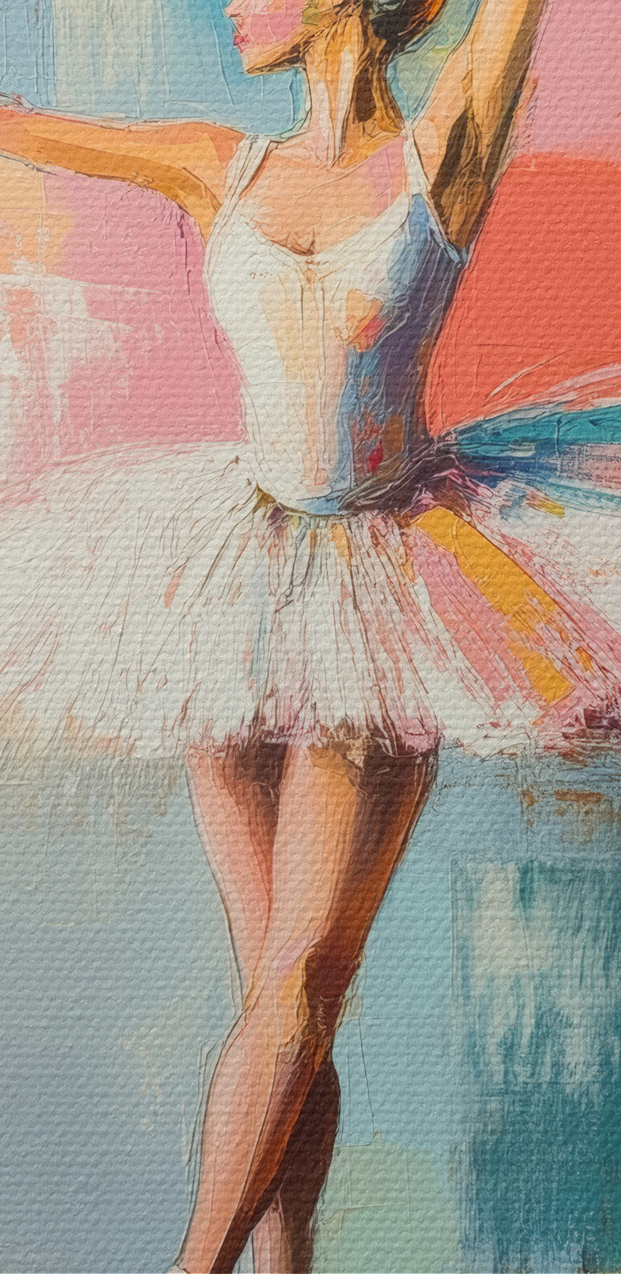 Dieser Leinwanddruck fängt eine Ballerina ein, die in Ihr Wohnzimmer tanzt und direkt von der Wand zu springen scheint. Stellen Sie sich das Farbenspiel vor – sanfte Pastelltöne, die sich mischen, als wären sie auf der besten Party gewesen. Ihr Tutu wirbelt mit der Anmut einer Frühlingsbrise! Es ist ein bisschen abstrakt, ein bisschen Kunst und eine ganze Menge Eleganz. Stellen Sie sich vor, Sie schlürfen Ihren Morgenkaffee oder entspannen sich nach einem langen Tag, und diese lebhafte Szene erinnert Sie daran, in Ihrem eigenen Leben ein wenig zu tanzen. Perfekt für alle, die einen Hauch von Laune an ihrer Kunst schätzen!