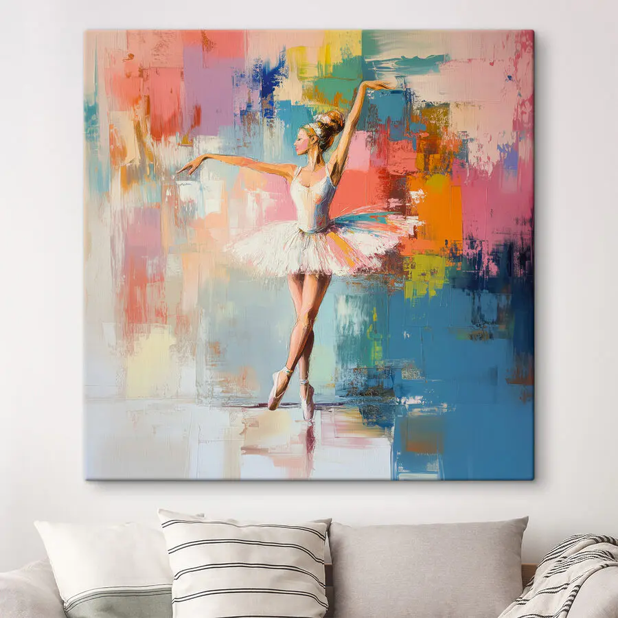 Dieser Leinwanddruck fängt eine Ballerina ein, die in Ihr Wohnzimmer tanzt und direkt von der Wand zu springen scheint. Stellen Sie sich das Farbenspiel vor – sanfte Pastelltöne, die sich mischen, als wären sie auf der besten Party gewesen. Ihr Tutu wirbelt mit der Anmut einer Frühlingsbrise! Es ist ein bisschen abstrakt, ein bisschen Kunst und eine ganze Menge Eleganz. Stellen Sie sich vor, Sie schlürfen Ihren Morgenkaffee oder entspannen sich nach einem langen Tag, und diese lebhafte Szene erinnert Sie daran, in Ihrem eigenen Leben ein wenig zu tanzen. Perfekt für alle, die einen Hauch von Laune an ihrer Kunst schätzen!