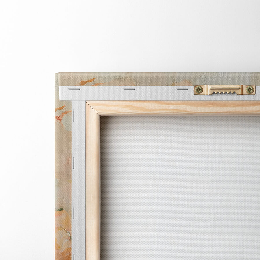 Hier ist ein kleines Stück Laune für Ihre Wände – ein bezaubernder Leinwanddruck, der sich anfühlt, als würde das morgendliche Sonnenlicht über einen Garten der Träume fallen. Es ist nicht irgendein Gemälde; diese Blumen auf weißer Oberfläche scheinen in sanften, pfirsichfarbenen Wirbeln zu tanzen. Stellen Sie sich vor: Jeder Blick auf dieses Kunstwerk erfüllt Ihren Raum mit Ruhe und einem Hauch von Romantik. Perfekt für die Momente, in denen man mit einer Tasse Tee in der Hand zufrieden seufzen möchte – vielleicht während man über die Geheimnisse des Lebens nachdenkt oder einfach einen faulen Nachmittag genießt. Ein bezauberndes Geflüster der Natur auf Leinwand gebannt.
