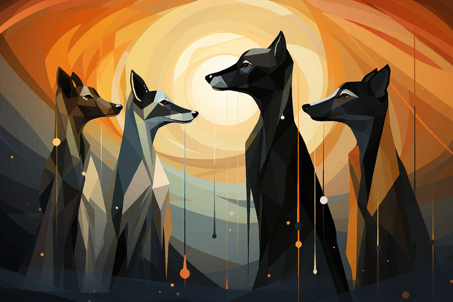 Stellen Sie sich vor, Sie hätten ein skurriles Hundetreffen direkt an Ihrer Wand! Dieses Leinwandbild mit dem Titel “Group of Dogs Looking at Each Other” verbindet abstrakte Kunst mit verspieltem Charme. Perfekt für Hundeliebhaber oder alle, die sich über ein wenig Skurrilität in ihrem Raum freuen. Es ist wie eine stille Unterhaltung zwischen Hundekumpels, die jedes Mal, wenn Sie vorbeigehen, Neugierde weckt. Die warmen, wirbelnden Farben schaffen eine gemütliche Atmosphäre, die jeden Raum ein wenig einladender wirken lässt. Ein Stück, das garantiert Komplimente einheimst (Wortspiel beabsichtigt), und vielleicht wird es Ihr liebster unerwarteter Gast!