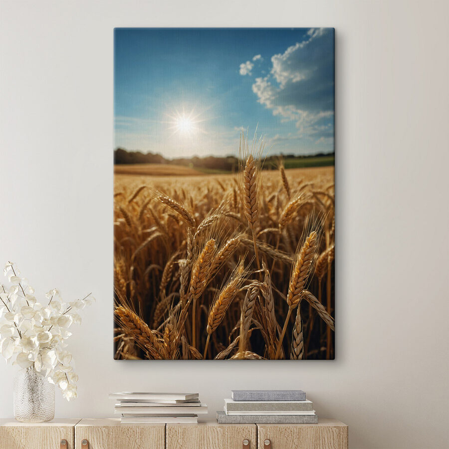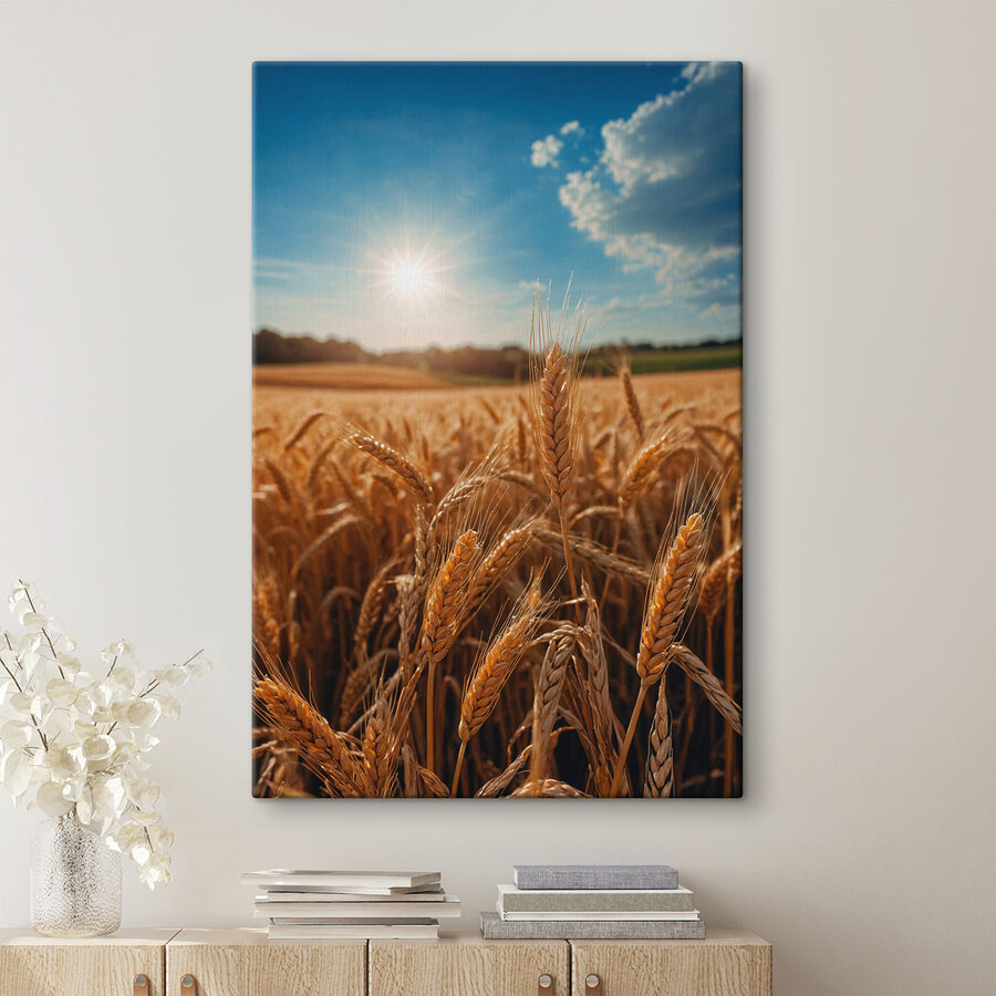 Stellen Sie sich vor, Sie treten in ein sonnengetränktes Feld mit goldenem Weizen, dessen Halme sich sanft in einer leichten Brise wiegen. Dieser Leinwanddruck fängt diesen heiteren Moment perfekt ein. Es ist wie ein kleines Stück ländlicher Magie, das Wärme und Freude in jeden Raum bringt. Stellen Sie es sich über dem Esstisch vor oder vielleicht als Blickfang im Wohnzimmer, wo es zu Gesprächen über das Leben auf dem Bauernhof und faule Sommertage anregt. Die satten Farben und der helle Himmel können selbst die grauesten Tage in etwas Besonderes verwandeln. Es erinnert daran, dass Schönheit auch in einfachen, alltäglichen Szenen zu finden ist. Was für eine wunderbare Art, Charme zu verbreiten!