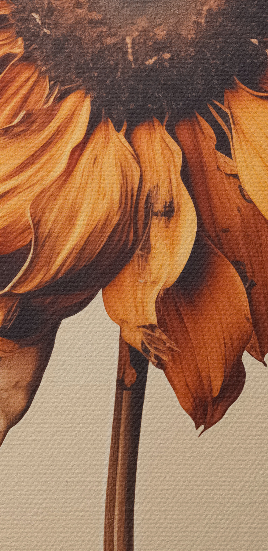 Erhellen Sie Ihren Raum mit der “Sonnenblume mit brauner Mitte”. Dieses atemberaubende Bild ist wie eine warme Umarmung für Ihre Wände und strahlt die fröhliche Stimmung aus, die nur eine Sonnenblume vermitteln kann. Stellen Sie sich gemütliche Abende vor, an denen Sie an Ihrem Lieblingsgetränk nippen, während diese leuchtende Blüte einen Hauch von natürlichem Charme versprüht. Perfekt für alle, die die kleinen Dinge zu schätzen wissen – wie die Sonnenblumen, die dem Licht zu folgen scheinen. Ob im Wohnzimmer oder in einer gemütlichen Ecke, diese Leinwand lässt jeden Tag ein bisschen sonniger und einladender erscheinen. Es ist die Schönheit der Natur, eingefangen und bereit, ein Lächeln zu zaubern!