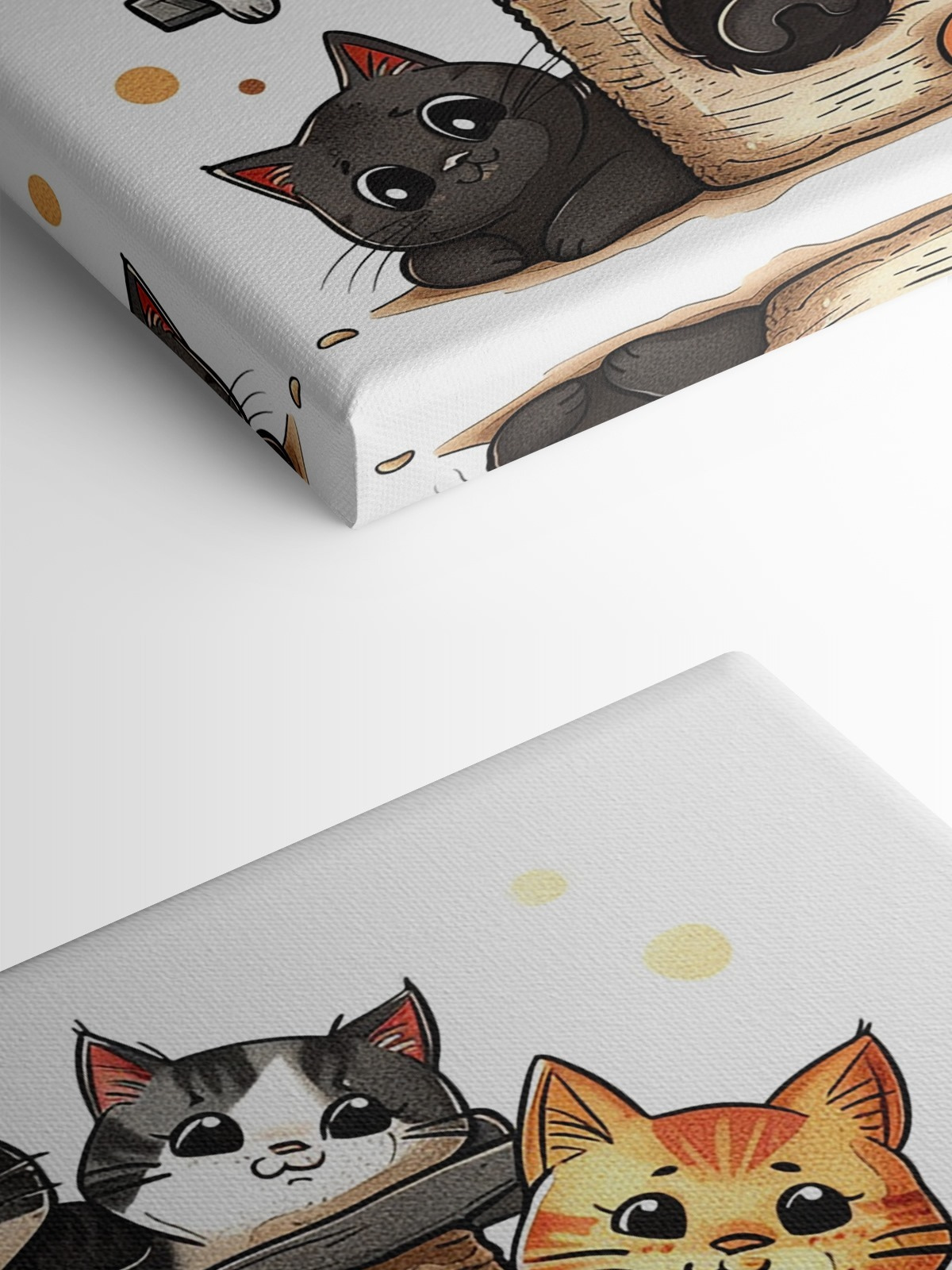 Stellen Sie sich einen verspielten Turm voller liebenswerter Katzen vor, von denen eine charmanter ist als die andere. Dieser Leinwanddruck “Katzengruppe auf einem Turm” fängt diese skurrile Szene ein, in der Neugierde auf Niedlichkeit trifft. Es eignet sich perfekt für das Kinderzimmer oder die Ecke eines jeden Katzenliebhabers und strotzt nur so vor leuchtenden Farben und freundlichen Katzengesichtern, die Wärme in jeden Raum bringen. Vielleicht spüren Sie sogar, wie ein verspieltes Schnurren von den Wänden widerhallt. Es ist, als hätte man ein Orchester aus Miauen, das die Freude direkt in Ihrem Zuhause dirigiert! Pfoten runter, das ist ein Genuss.
