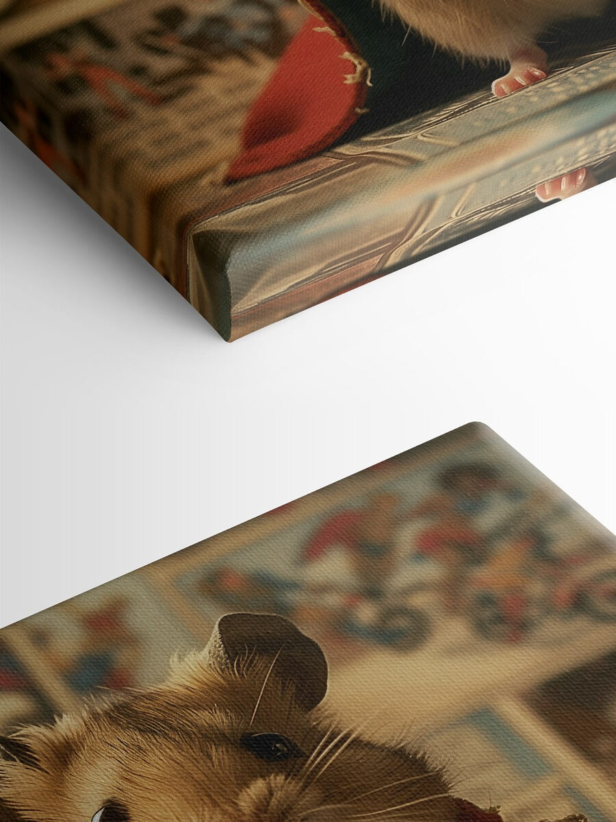 Hast du dich jemals gefragt, wie ein kleiner Held aussieht? Hier ist dieser Leinwanddruck eines niedlichen Hamsters mit einem Umhang und einem Hammer in der Hand. Es ist die Art von Kunst, die dich jedes Mal zum Lächeln bringt, wenn du es ansiehst. Stellen Sie sich das Bild an Ihrer Wand vor, um Ihren Tag mit einem Hauch von Laune zu bereichern. Perfekt für jeden Tierliebhaber oder Superhelden-Fan. Dieser kleine Kerl könnte Ihren inneren Helden inspirieren oder zumindest zum Schmunzeln bringen. Es ist die Art von lustiger und skurriler Dekoration, die ein Haus wie ein Zuhause fühlen lässt. Liebenswert, unerwartet – wie ein Ausbruch von Freude!